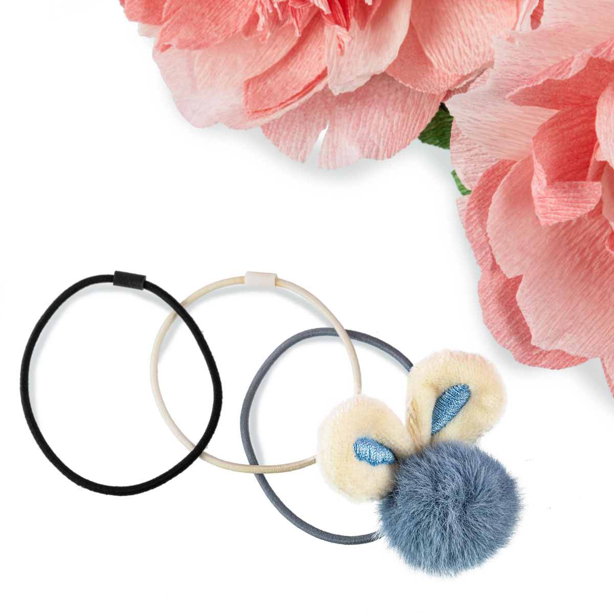 Резинки для волос, 3 шт. - белая, черная и цветная с декоративным элементом. Резиночки универсального размера, диаметр 5см, долго прослужат, не потеряв внешний вид, бережно и надежно фиксируют волосы, даже самые густые и непослушные. Небольшой декор на одной из резиночек добавляет аксессуару тепла и индивидуальности.