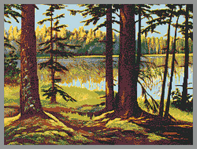 Схема для вышивания цв. А3 ДК-521 Озеро в лесу Фото 1.