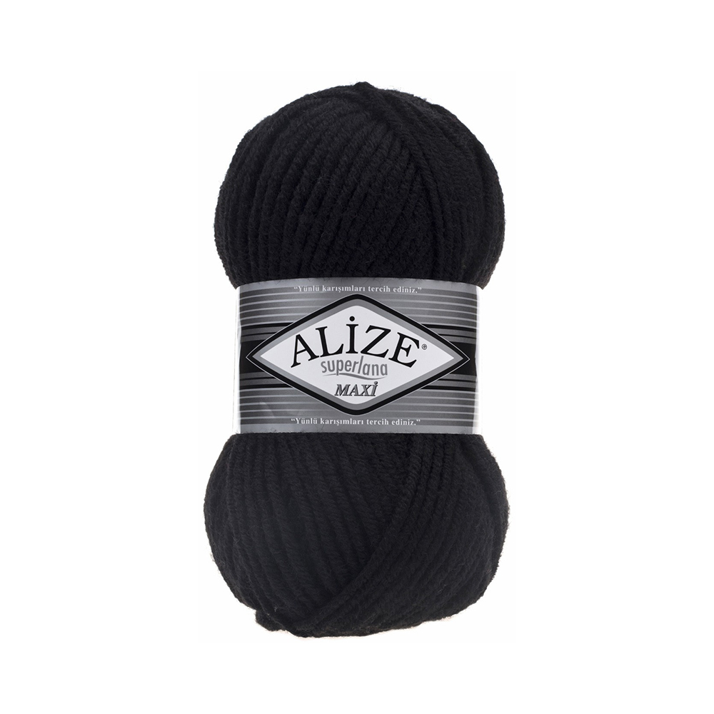Пряжа Alize Superlana Maxi 75% акрил, 25% шерсть 100 г 100 м 060 черный