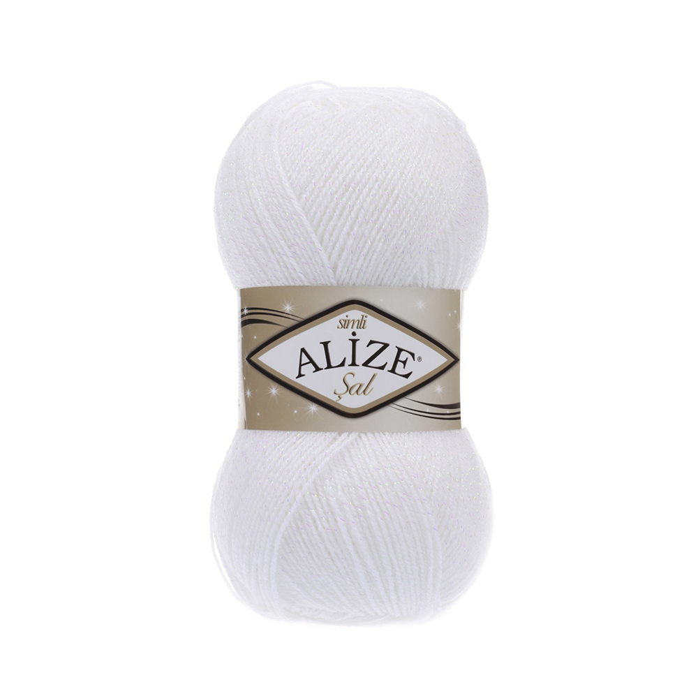 Пряжа Alize Sal simli 96% акрил, 4% метанит 100 г 460 м 055 белый