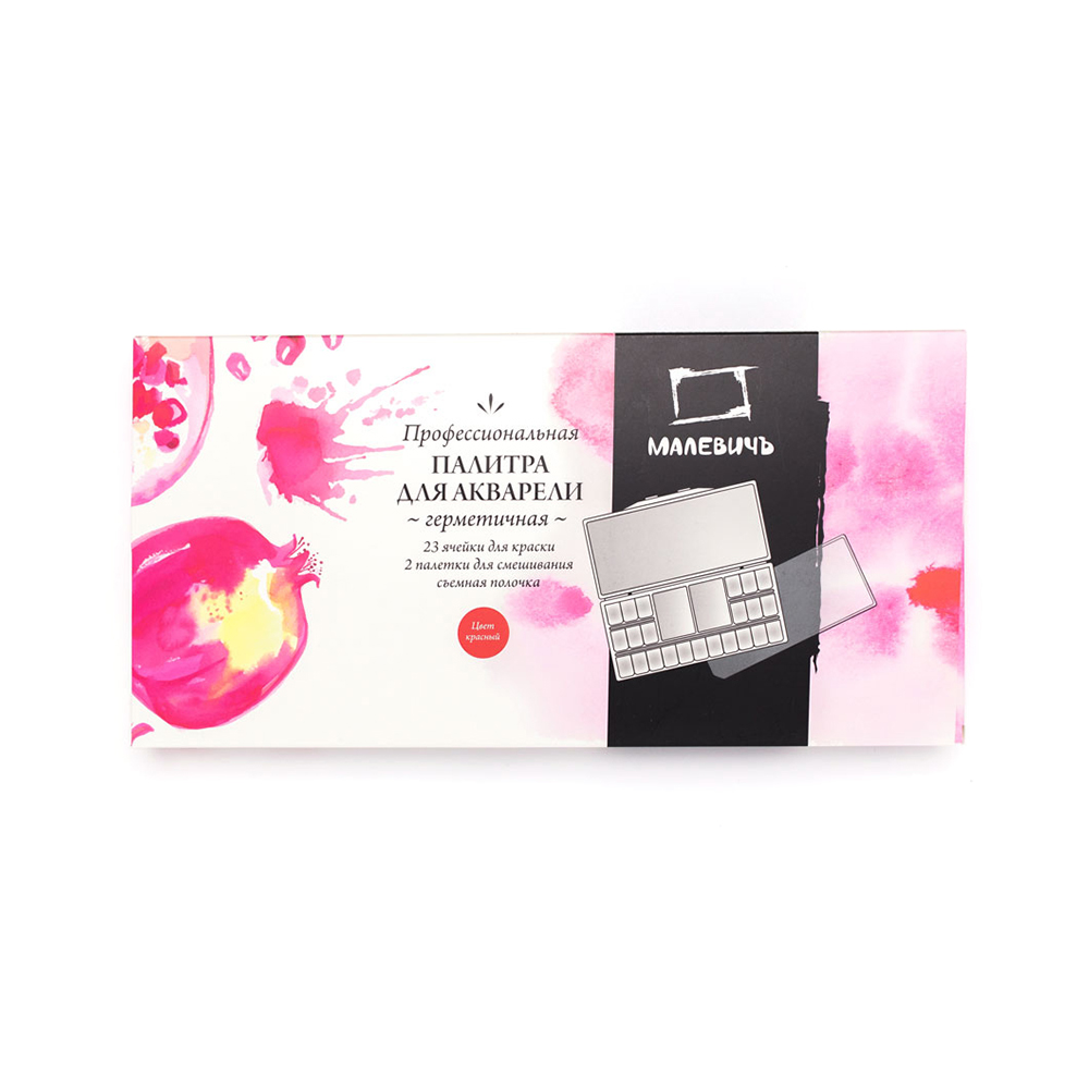 Палитра Малевичъ Палитра для акварели герметичная 23 ячейки 15.8 х 32 см красная 195208 Фото 1.