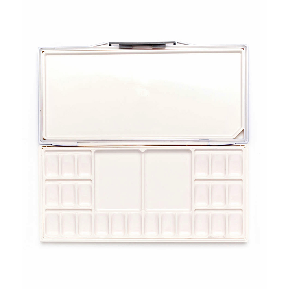 Герметичная палитра необходима для работы с акварелью в тюбиках. Акварель выдавливается из тюбиков в специальные ячейки и может хранится там долгое время. Одна из секций для смешивания съемная и её легко мыть.