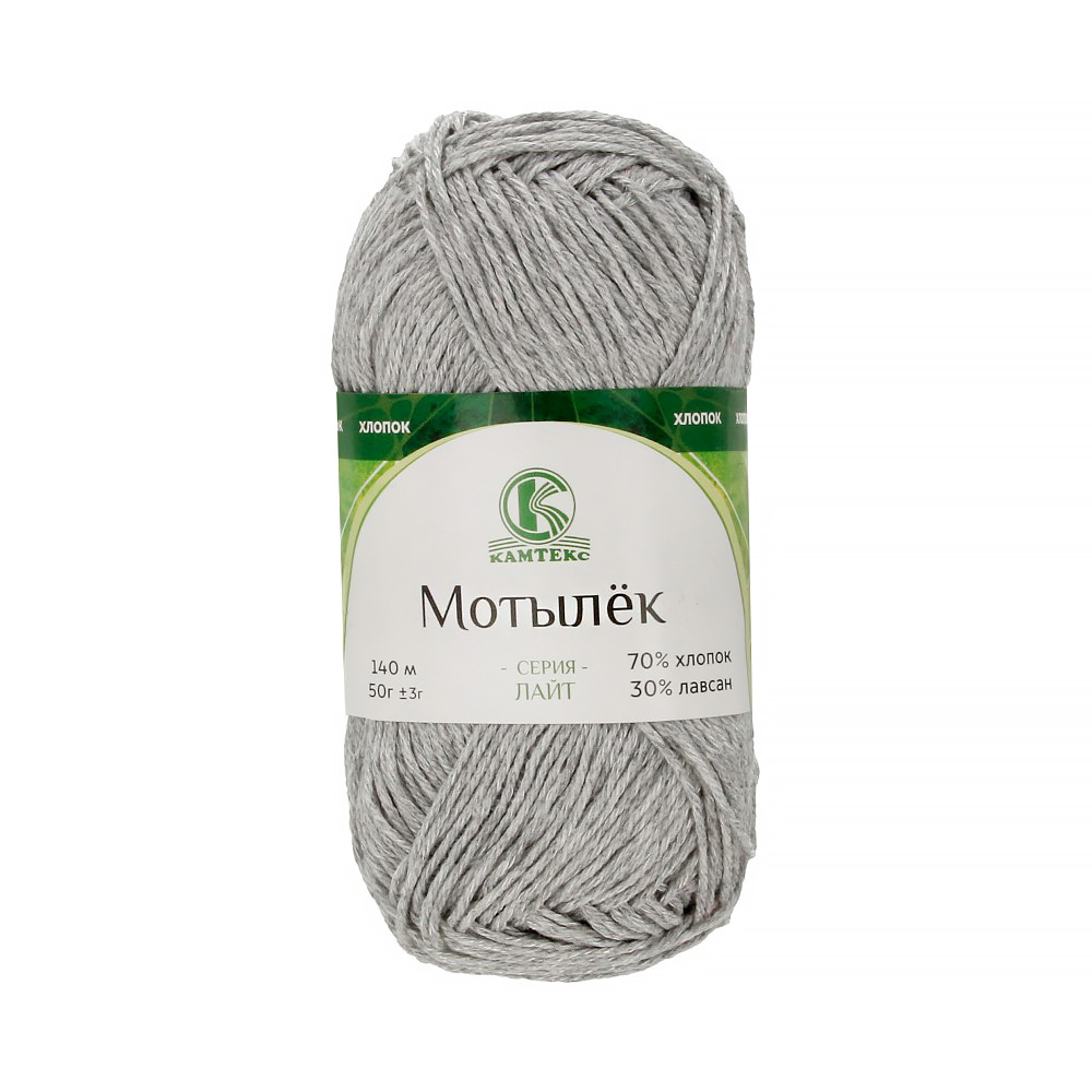 Пряжа Камтекс КТ _Мотылёк 70% хлопок, 30% лавсан 50 г 140 м 008 серебристый