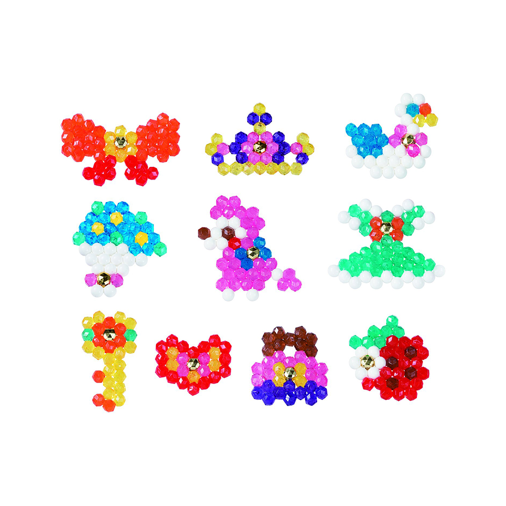 Бусины выкладываются на форму из прозрачного пластика, под которой устанавливается лист-шаблон. Форма для выкладывания бусин не входит в комплект. Бусины соединяются при помощи воды. Игрушка готова, когда вода впиталась, а все элементы скрепились между собой. Двусторонние листы шаблонов дают множество вариантов для создания игрушек. Из бусин разных цветов можно создать большое количество разнообразных фигурок.