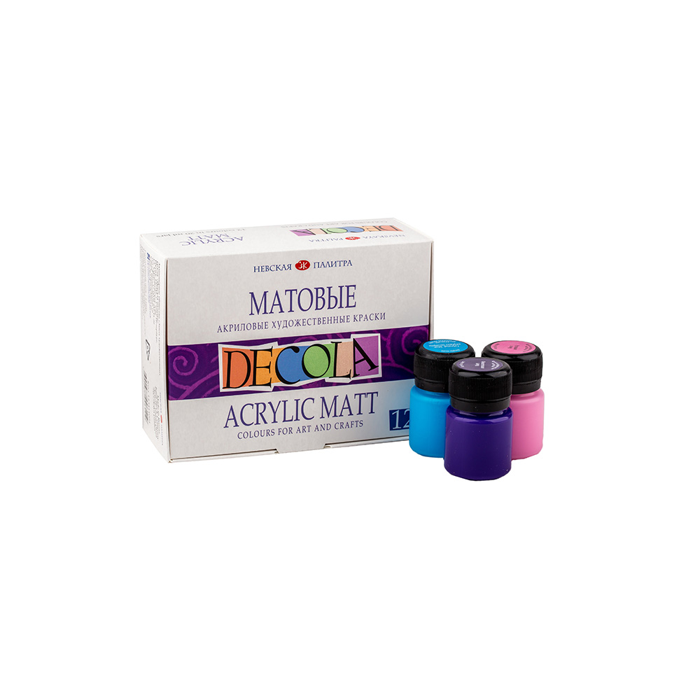 Матовые краски «Decola» на основе водной акриловой дисперсии легко наносятся на любую поверхность: бумагу, картон, грунтованный холст, дерево, металл, кожу и др.). Обладают высокой урывистостью, хорошо смешиваются, быстро высыхают. После высыхания приобретают матовую поверхность, не смываются водой. Могут быть использованы для росписи специализированных поверхностей таких как ткань, кожа, пластик, металл, стекло или керамика. Для профессионального уровня росписи сложных поверхностей - гибких как ткань или гладких как стекло - рекомендуется использовать продукцию специализированных серий «Decola», обладающих лучшей адгезией с заявленными поверхностями. При работе с впитывающими и цветными поверхностями перед нанесением красочного слоя также рекомендуется предварительно загрунтовать изделие белым акриловым грунтом «Сонет» в 1-3 слоя с промежуточной сушкой. Храните краски плотно закрытыми. Кисти и инструменты сразу после работы промойте водой.