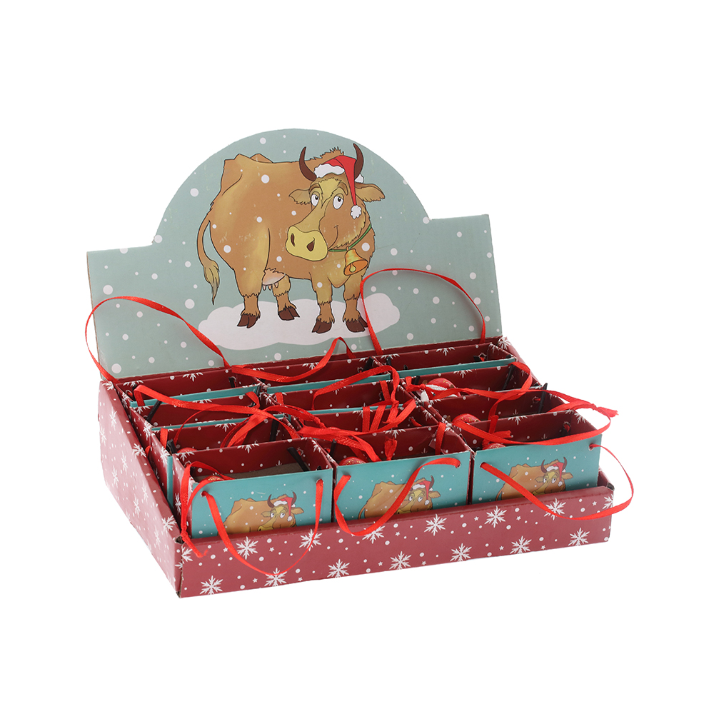 Украшение новогоднее "Коровка", изготовлено из полимерных материалов. Размер: L7 W3 H5,5 см. Упаковка-подарочная коробка. Представлено в восьми вариантах.