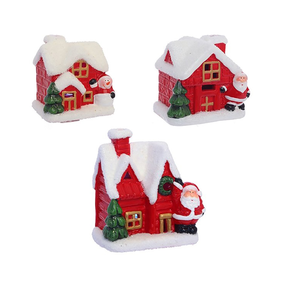 Новогоднее украшение с подсветкой "Домик с елочкой". Великолепное настольное украшение создаст неповторимое ощущение праздника. Размер композиции 7,5х5,5х9,4 см . Изготовлена из керамики с использованием ярких красок покрытых глазурьюи глиттером. Работает от 2 батареек AG13. В артикуле 3 вида. Упаковка - пленка