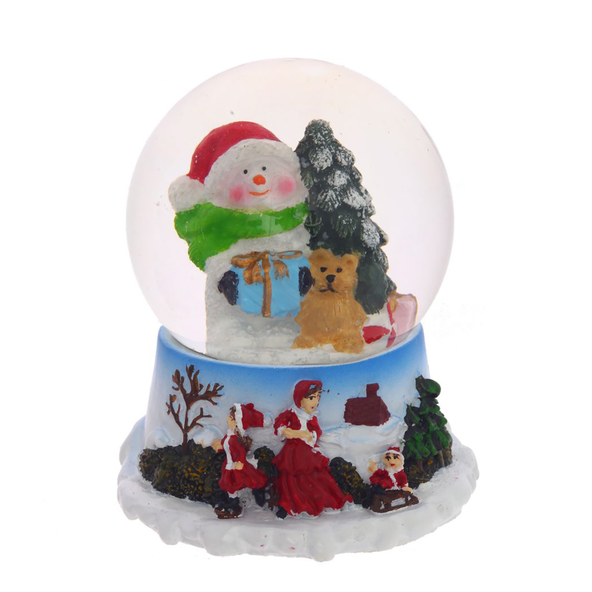 Шар заполнен водой с глиттером, фигурка и подставка изготовлены из полимерных материалов. Размер: L5,2 W5,2 H6,3 см. Представлена в четырех вариантах. Внимание: при длительном нахождении в минусовой температуре возможно образование льда, который сместит фигурку и повредит шар.
