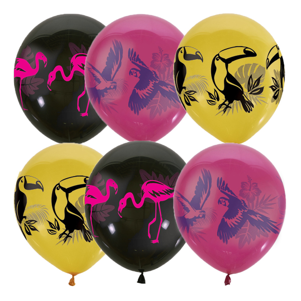 Круглые шарики черного, розового и желтого цветов, на которые методом шелкографии нанесены изображения экзотических птиц – фламинго, тукана, орлана. Прекрасно подойдут для оформления стилистической вечеринки, фотозоны, а также как приз для детей за участие в эстафетах и конкурсах. Продукция компании «Latex Occidental» [Мексика] отличается высоким качеством, равномерной однородной окраской, прочностью и эластичностью. Шары можно наполнить гелием либо воздухом.