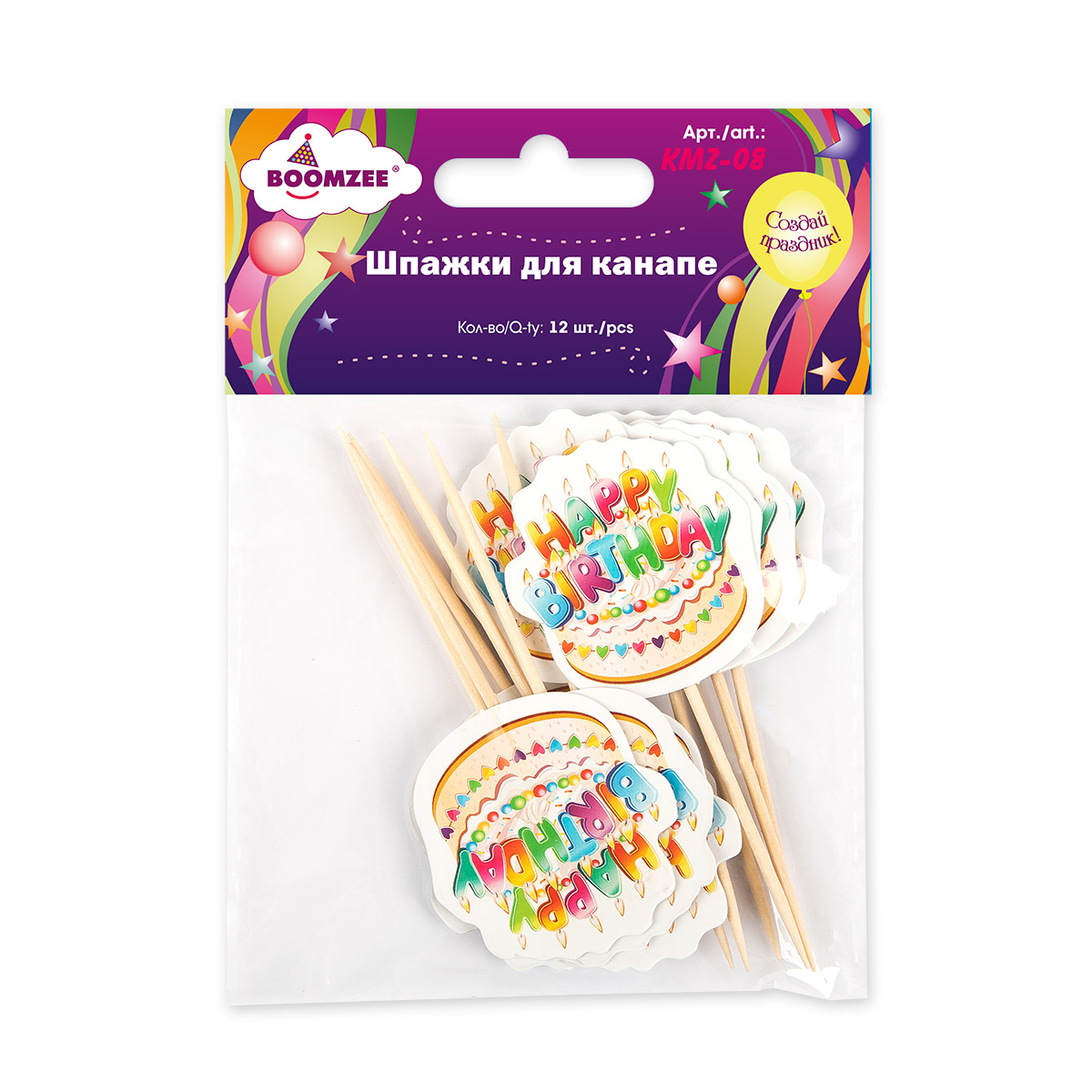 "BOOMZEE" KMZ-08 Шпажки для канапе 12 шт. 04_Торт Happy Birthday
