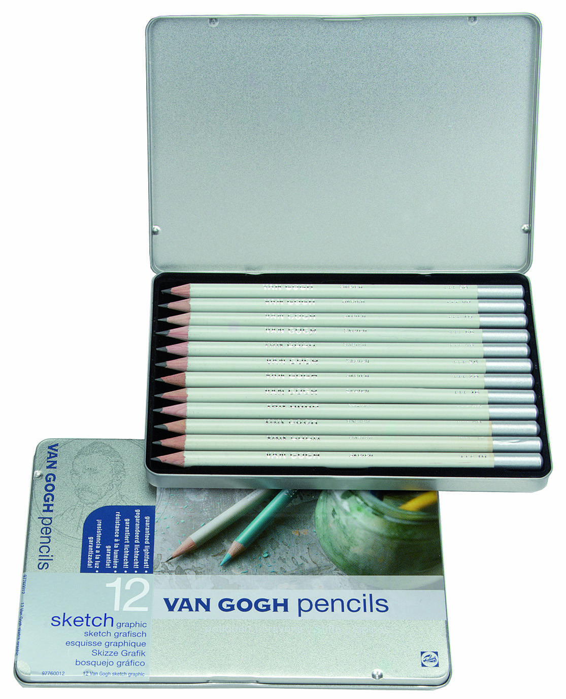 Набор для рисования Van Gogh "Graphiteh" состоит из 12 чернографитовых карандашей. Эти графитовые карандаши профессионального художественного качества обладают устойчивостью к свету. Они подойдут и для набросков, и для полноценных графических работ. Корпуса изготовлены из кедра, выращенного в ответственных условиях, мягкое дерево легко затачивается. Прочные однородные грифели без усилий идут по бумаге, оставляя четкий след. В набор входят следующие степени твердости: 9B, 8B, 7B, 6B, 5B, 4B, 3B, 2B, 1B, HB, 1F, 1H. Карандаши упакованы в красивую металлическую коробку.