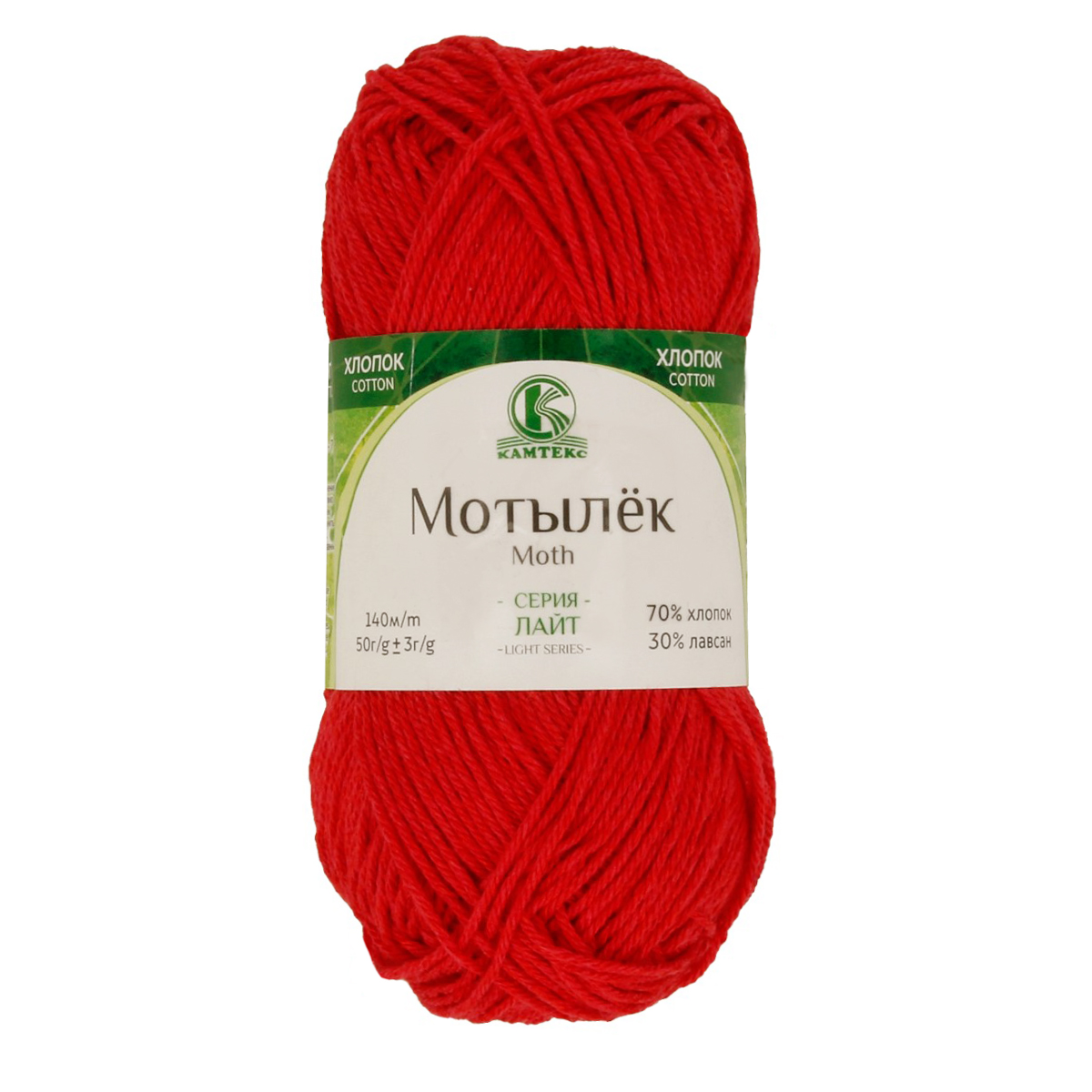 Матовость хлопка и эффектность лавсана в сочетании выглядят очень эффектно, это можно заметить уже при вязании.Нить ощущается слегка объёмной, но в то же время лёгкой. Мотылёк для вязания на машине подходит очень хорошо, машинное полотно не даёт косины, очень ровное, с красивым мерцанием. И, конечно, вязальщицы спицами и крючком могут воплотить свои проекты с этой пряжей: Мотылёк подойдёт для летних жакетов, юбок, пуловеров, палантинов.