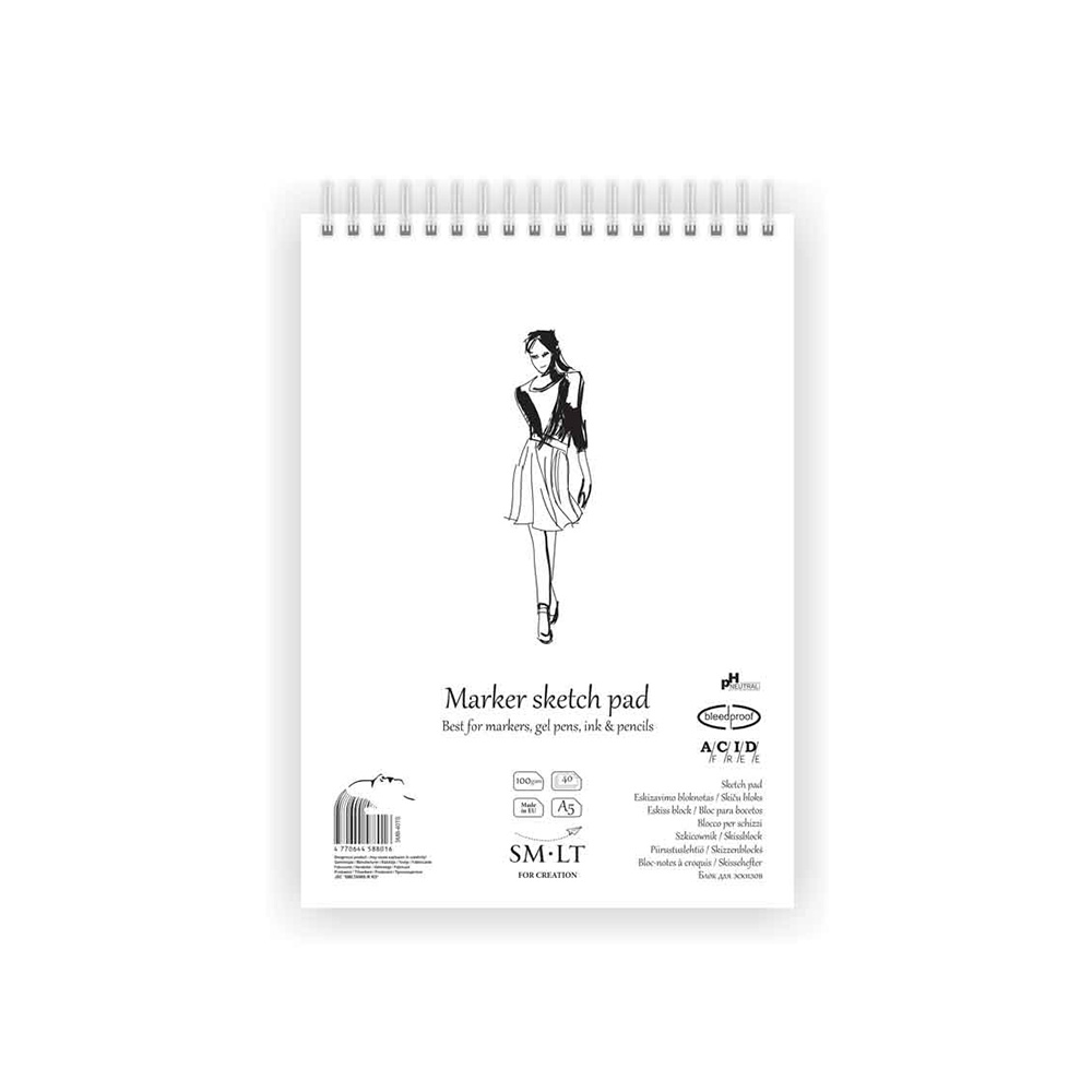 Скетчбук на спирали для различных видов техник. Крепление по короткой стороне. Листы с перфорацией для легкого и ровного отрыва. Обложка из экологичного переработанного картона с узнаваемым графическим рисунком производителя, жесткий задник обложки может использоваться в качестве планшета. Бумага белоснежного цвета с идеально гладкой фактурой. Скетчбук предназначен для работы маркерами на водной и спиртовой основе. Одна сторона каждого листа покрыта специальным материалом против протекания. Плотность: 100 г/м2
