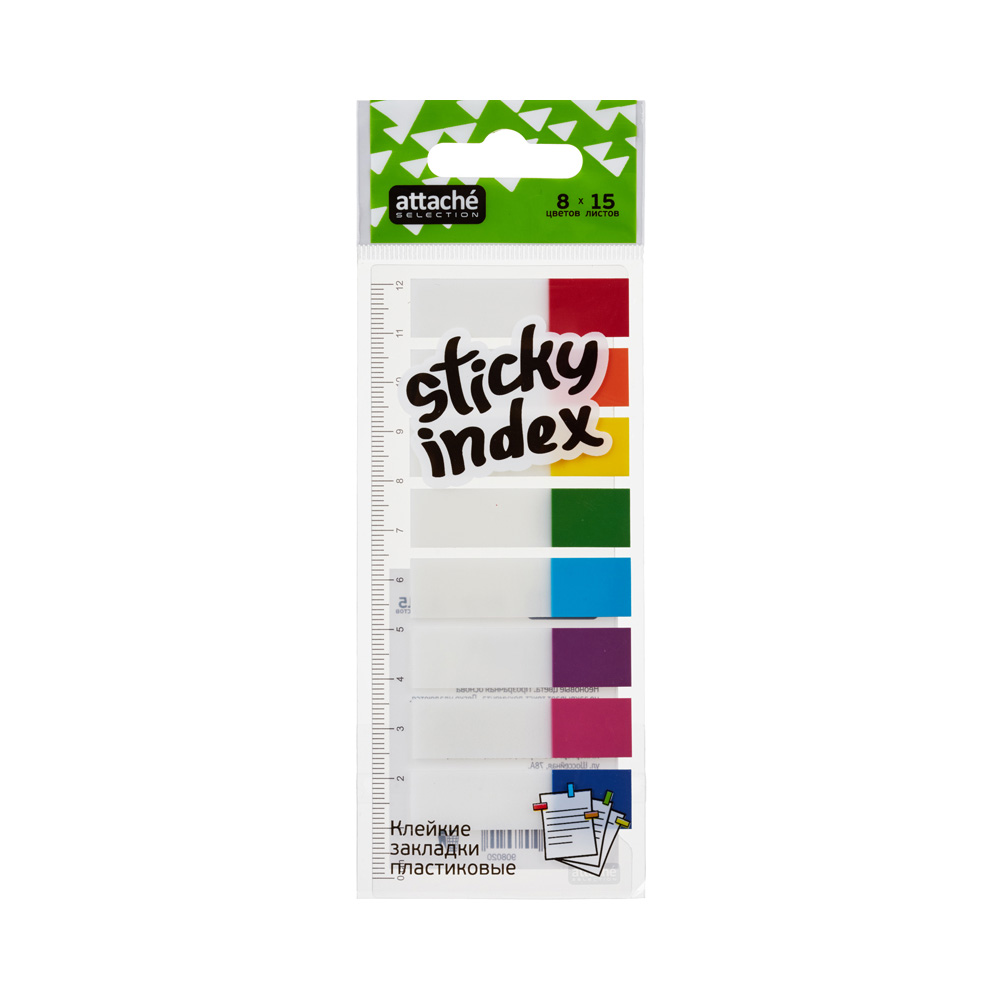 Клейкие закладки, пластиковые. Легко удаляются, не оставляя следа. В упаковке 8 ярких цветов по 15 листов. Размер закладки 12 мм х 45 мм. Размещены на линейке 12 см. На закладках есть возможность оставлять надписи. Легко переклеиваются.