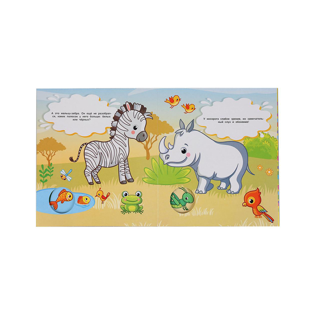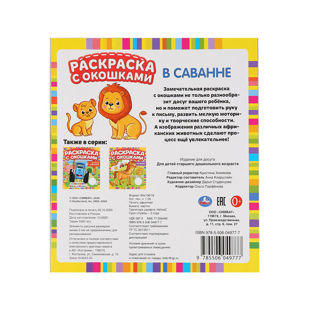 Малыш с удовольствием будет раскрашивать интересные картинки с чётким контуром и играть с окошками. В лёгкой игровой форме он познакомится с дикими животными, обитающими в саванне, и быстро выучит их названия. Благодаря удобному формату раскраску можно взять с собой в дорогу.