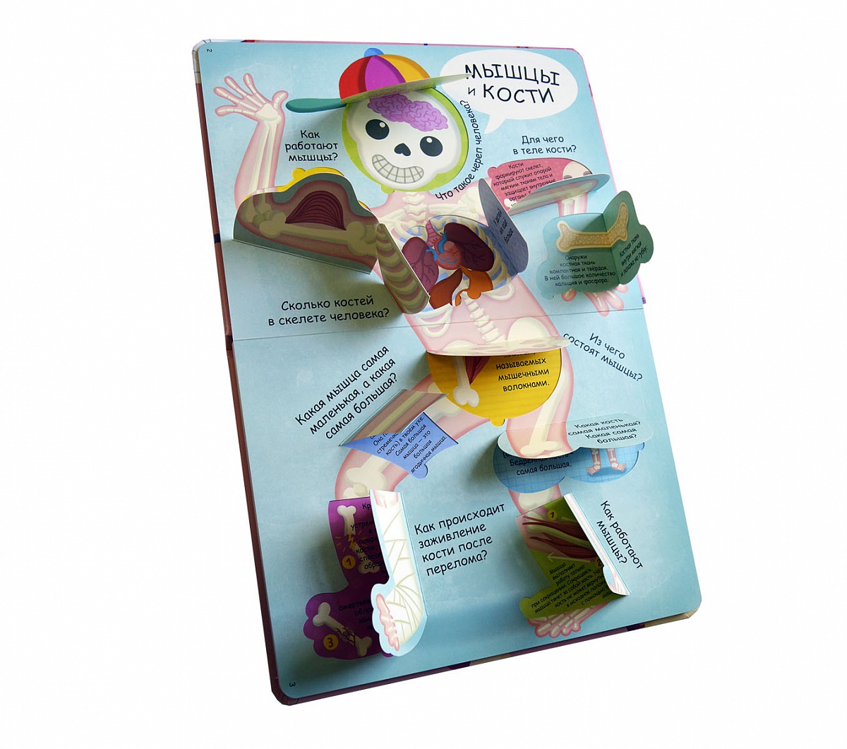 Что найдем внутри: Яркие и детальные иллюстрации, а также 60 створокс интересными и удивительными фактами о теле человека. На последнем развороте вас ждут вопросы для проверки знаний.