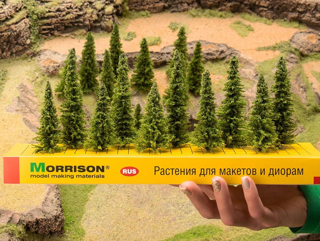 Набор елей высотой 7-10 см. Набор 10 штук. для макетов железной дороги в масштабах HO, TT, диорам в масштабах 1/35, 1/72 и создания растительного антуража архитектурных макетов в масштабах 1/50, 1/100, 1/150, 1/200.