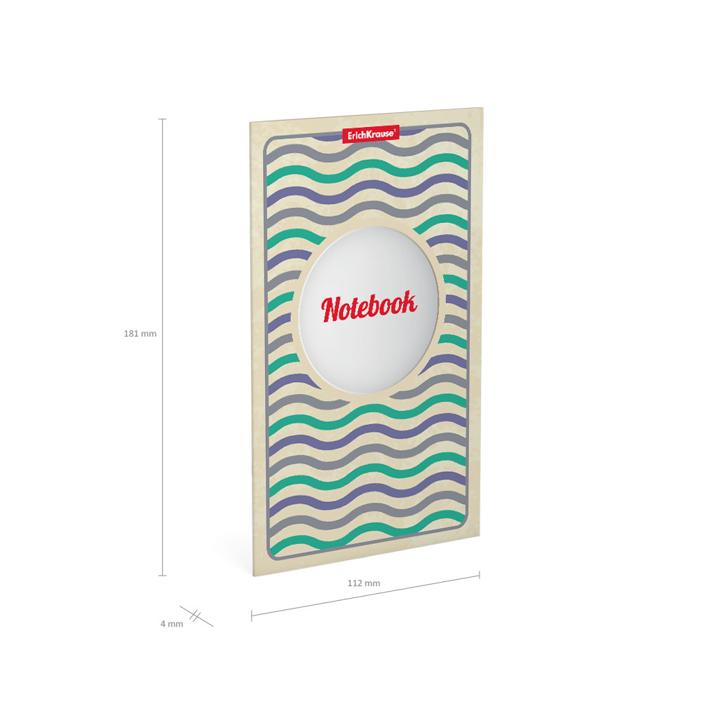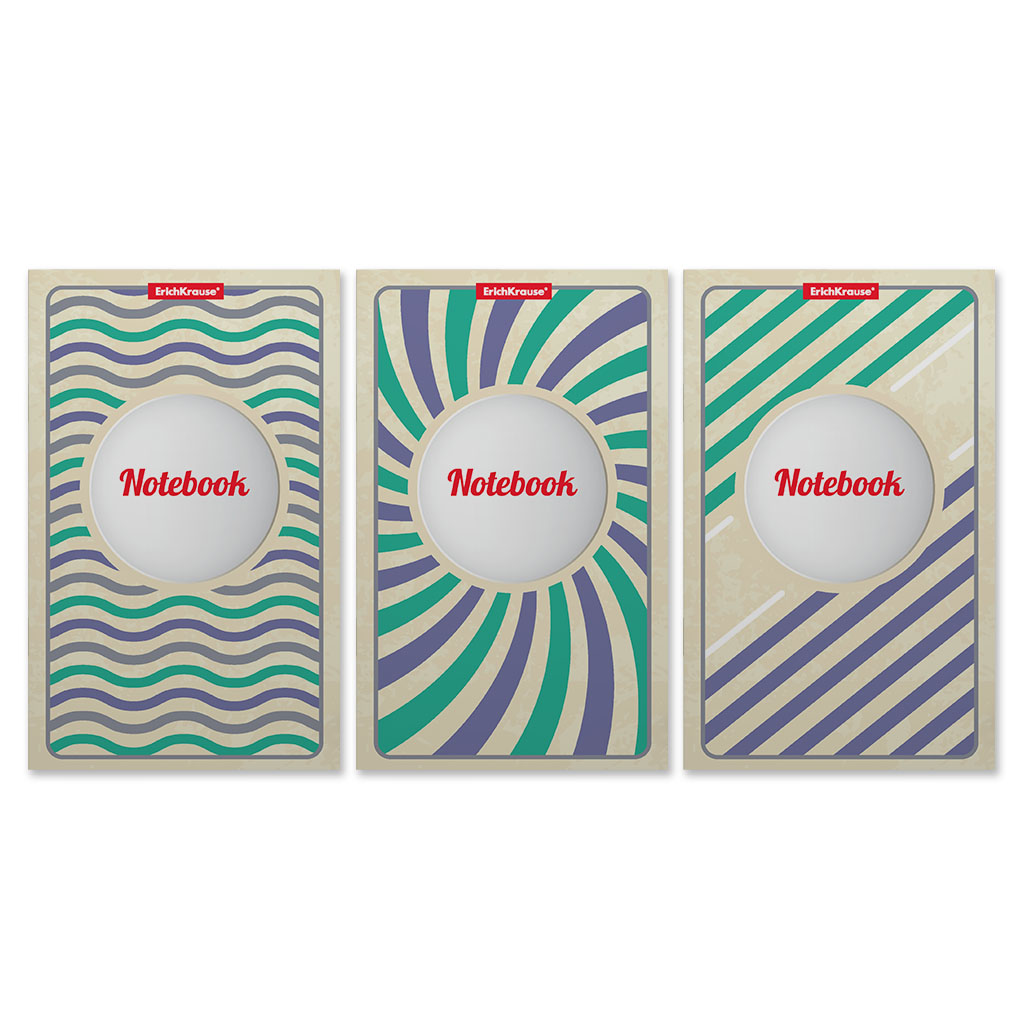 Записная книга размера 112х181 мм. Обложка из высококачественного мелованного картона плотностью 190 г/м2. В блоке 32 листа. Бумага офсетная белого цвета плотностью 60 г/м2. Линовка в точку. Цвет линовки — черный. Тип скрепления — скоба. Записные книги упакованы в термоусадочную пленку по 6 штук.