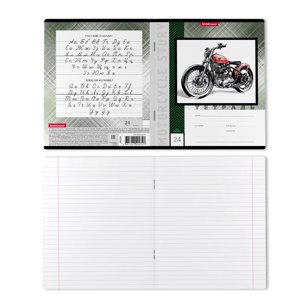 ErichKrause 49234 Тетрадь Motorcycle Story A5+ 170х203 мм 24 л. на скобе 60 г/кв.м линия Фото 1.