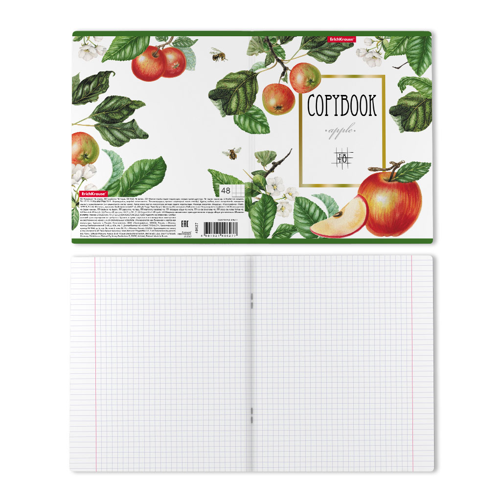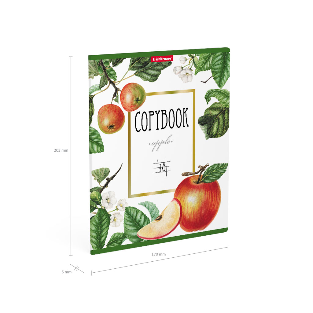 Тетрадь общая формата А5+ [170х203 мм]. Обложка из высококачественного мелованного картона плотностью 190 г/м2. Отделка обложки - выборочный лак и тиснение золотой фольгой. В блоке 48 листов в клетку с полями. Бумага офсетная плотностью 60 г/м2. Цвет линовки - синий. Скругленные уголки обложки и блока. Тип скрепления - скоба. Товар поставляется в нескольких вариантах цвета без возможности выбора.
