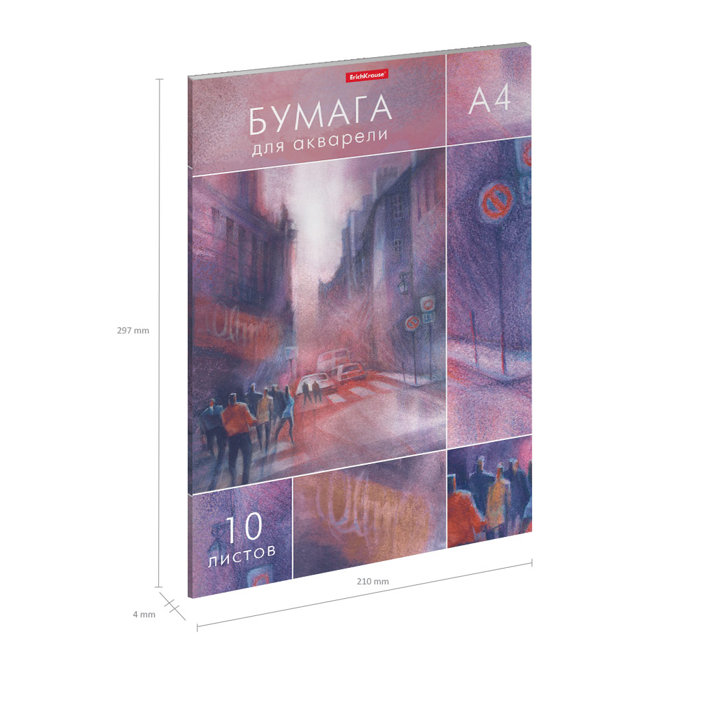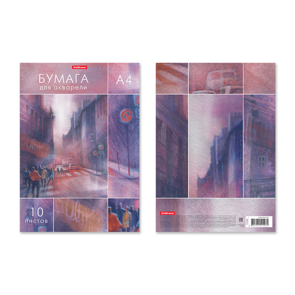 "ErichKrause" Бумага для акварели в папке 180 г/м2 A4 ( 210х297 мм) 21 х 29.7 см 10 л. "City Jazz" 51528 шероховатая мелкозернистая