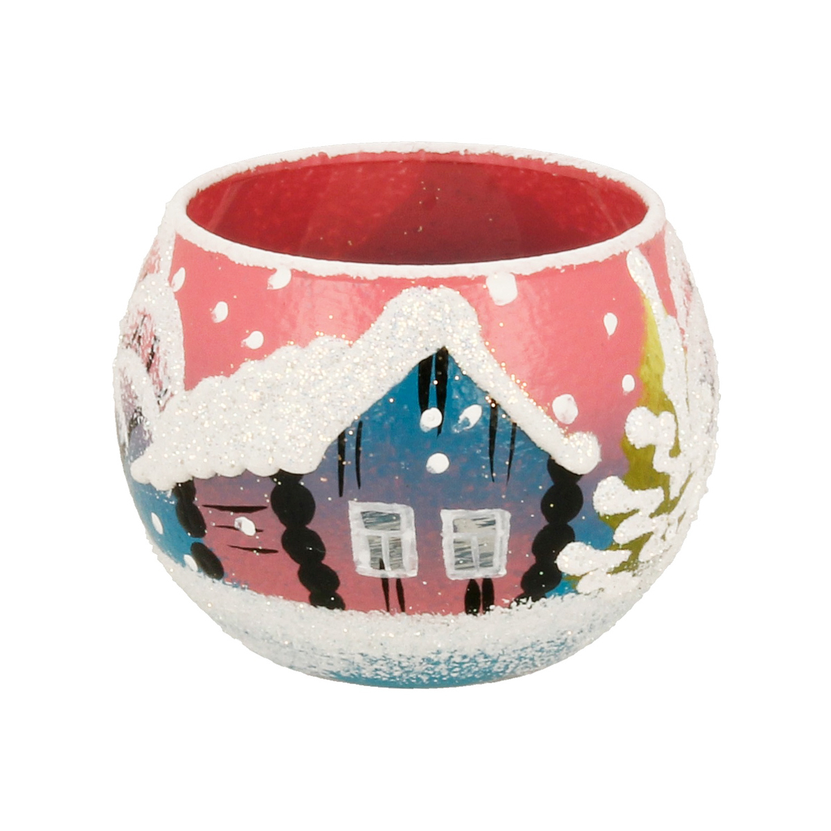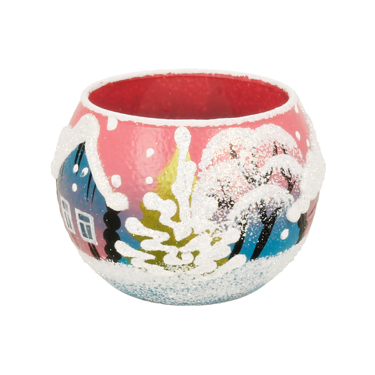 В чём волшебство Нового года? В чарующих праздничных огоньках! Оригинальная ваза-подсвечник с ручной росписью создаст в помещении тёплую уютную атмосферу. Просто установите в вазочке свечу, зажгите её и наслаждайтесь прелестью зимних праздников. Эта ваза — универсальное украшение, используйте её как подсвечник или как сосуд для цветов и блестящих декоративных веточек. Изделие выдувается мастером, затем на него наносится роспись. Хрупкий материал и кропотливые детали превращают каждую вазу в произведение творчества, вторую такую же не найти. Этот аксессуар станет уникальным новогодним подарком. Порадуйте себя и близких сказочным настроением!