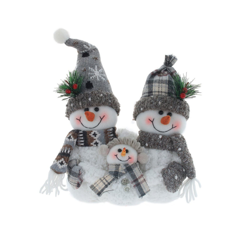 Игрушка набивная "Снеговик"- семья из 3-х снеговичков. Размер 19*11*33см. Изготовлена из текстильных и полимерных материалов.