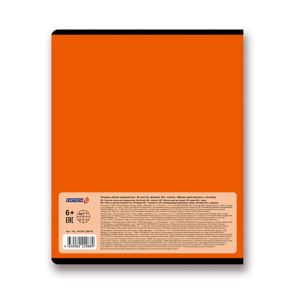 Светоч Тетрадь предметная Время действовать A5 48 л. на скобе 65 г/кв.м , белизна 100 % , клетка 48ТСК5_000135 Алгебра Фото 4.