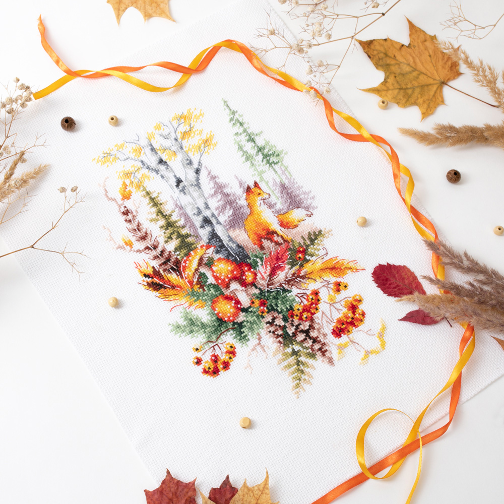 Набор для вышивания "Чудесная Игла" 200-018 "Дух осеннего леса" в технике счётный крест. В комплект входит: - хлопковая канва - хлопковые мулине - игла для вышивания - цветная символьная схема - краткая инструкция на русском и английском язык