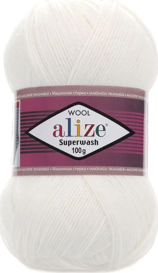 Пряжа Alize Superwash 75% шерсть, 25% полиамид 100 г 420 м 055 белый