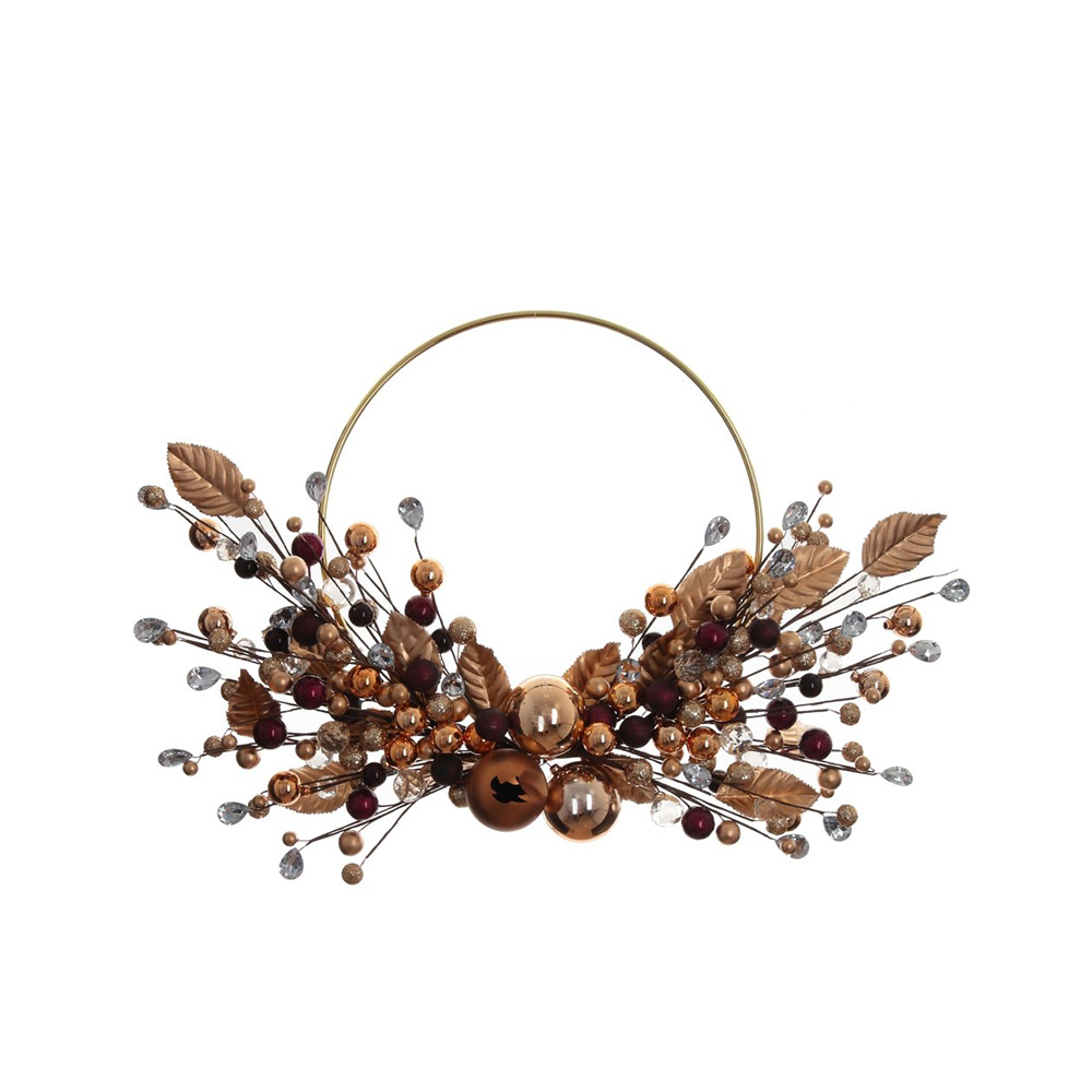 Украсьте свой дом новогодним веночком и создайте праздничное настроение и уют! Венок декорирован искусственными ветками, шарами, бусами золотого и бордового цветов.