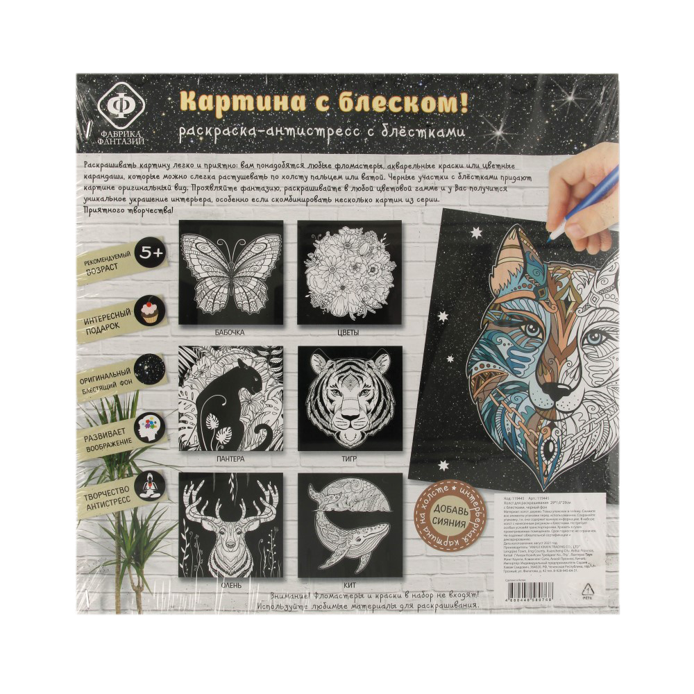 Фабрика Фантазий Холст для раскрашивания с блестками Хаски 119445 Фото 2.