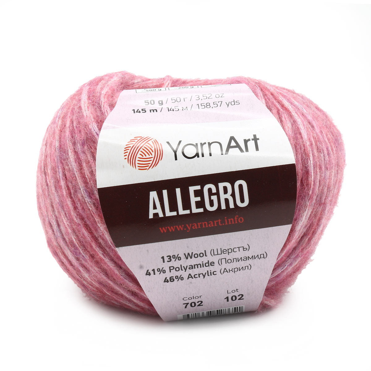 Пряжа YarnArt Allegro 46% акрил, 41% полиамид, 13% шерсть 50 г 145 м 702