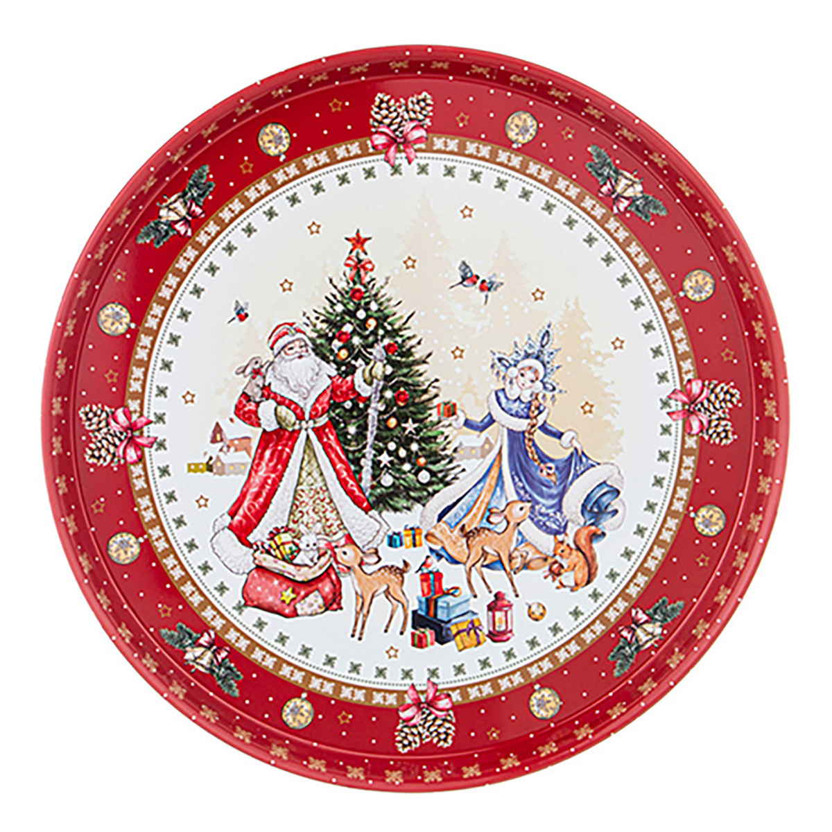 Поднос - это необходимый предмет для организации сервировки стола. Поднос имеет оптимальную круглую форму диаметром 33 см и удобные для переноса содержимого приподнятые стенки высотой 2,1 см. Коллекционный дизайн "Новый Год" создает уютную атмосферу в интерьере. Благодаря глянцевой поверхности, поднос неприхотлив в уходе – достаточно протереть влажной тряпкой. Материал сталь окрашенная.