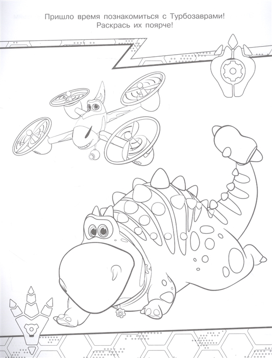 Да-да, динозавры существуют! Они большие, сильные и умеют превращаться в различные машины и механизмы. А ещё они добрые. Раскрась любимых героев — сделай мир Турбозавров ещё ярче!