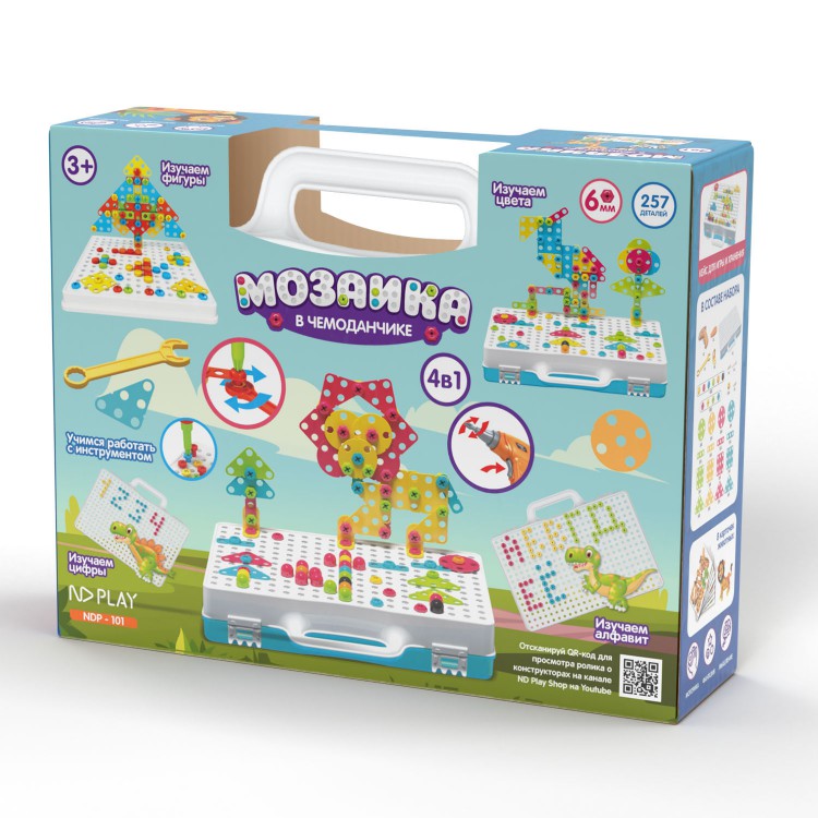 Развивающий детский конструктор 3D с дрелью 2-х режимов и 249 ярких деталей с болтами в чемодане + 8 карточек с животными! Новинка. Новые детали, крупная мозаика. На рабочую поверхность закрепляем карточки и ребенок уже может легко раскрашивать картинки мозаикой разного цыета и размера или вкручивать болтики и детали. В набор входят: коробочка для хранения конструктора , 249 деталей, удобный шуруповёрт с 3 разными насадками, мозаика, отвёртка и гаечный ключ. А для родителей самое главное то, что конструктор развивает: мелкую моторику рук, координацию движений, внимание, мышление, память, восприятие цвета и формы, навыки конструирования, художественное воображение и творческие навыки. Дрель оценят не только мальчики, но и девочки! Им будет интересно собрать цветочную поляну или разноцветных. Вариантов очень много, главное включить фантазию.