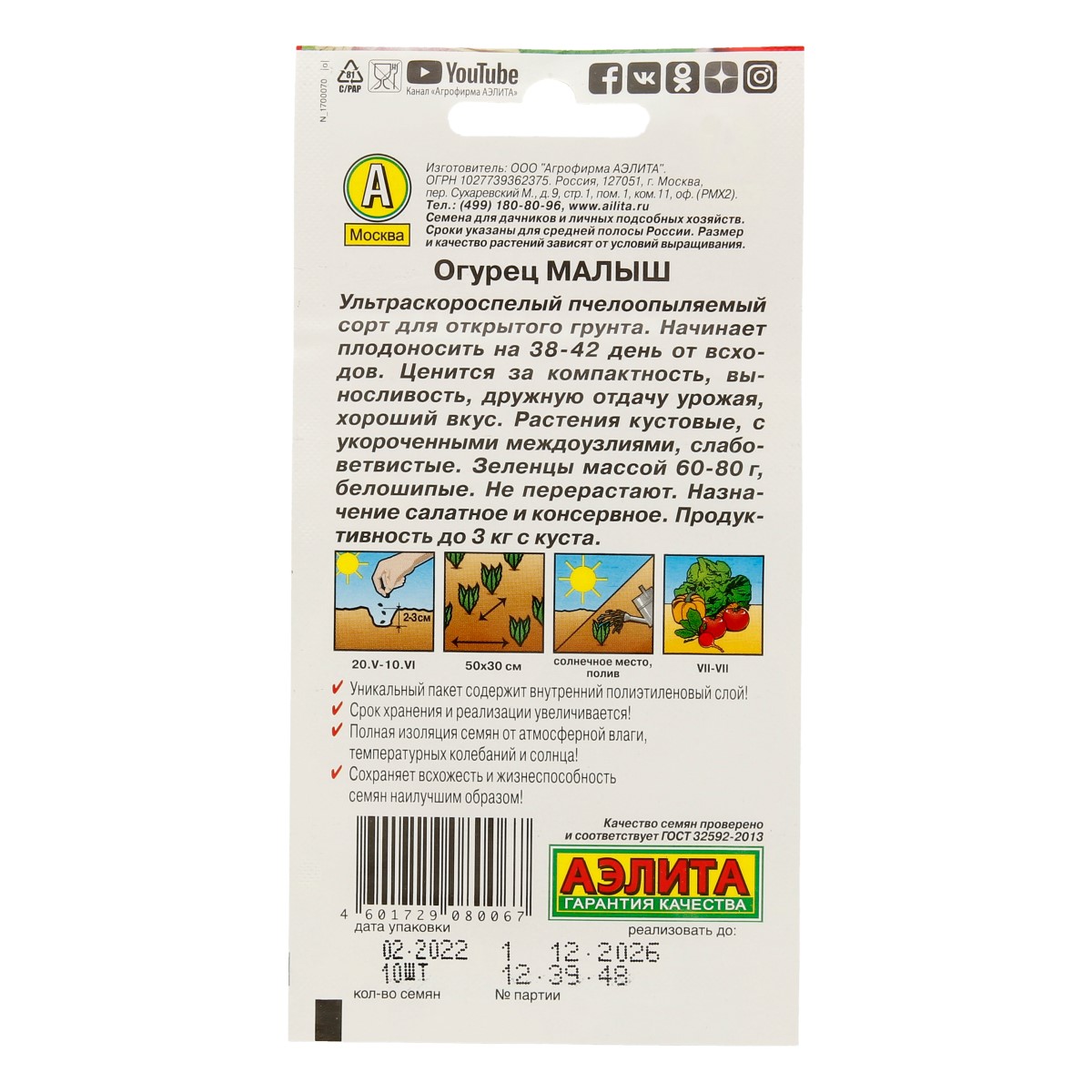 Ультраскороспелый пчелоопыляемый сорт для открытого грунта. Ценится за компактность, выносливость, дружную отдачу урожая, хороший вкус. Растения кустовые, с короткими междоузлиями. Длина плетей 60-100 см. Зеленцы массой 60-80 г, крупнобугорчатые, белошипые. Не перерастают. Назначение салатное и консервное.