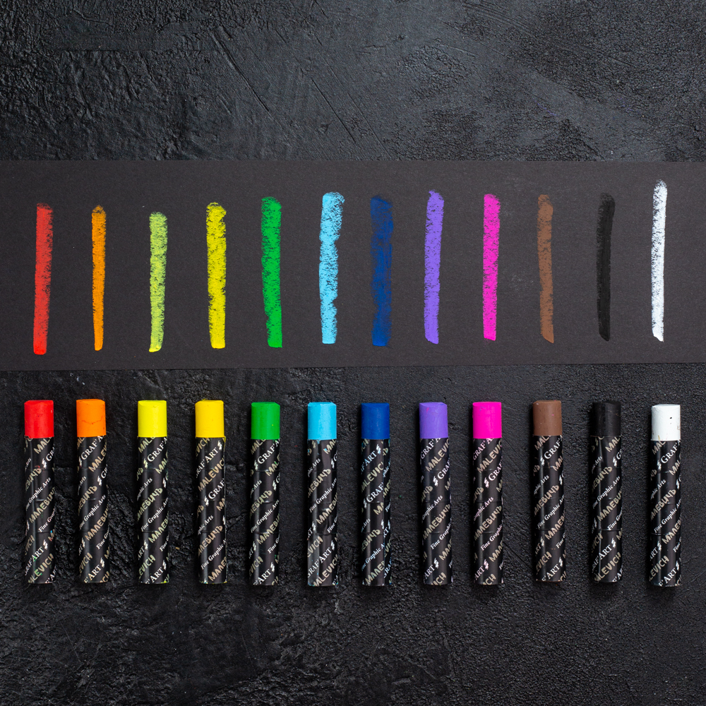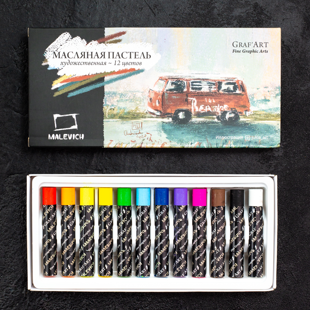 Масляная пастель Малевичъ профессиональная, 12 цветов. Традиционная масляная пастель это практичный и интересный материал как для начинающих, так и для профессиональных художников. Пастель обладает высокой кроющей способностью, интенсивностью цвета, смешиваемостью и мягкостью. Легко ложится на различные типы художественной бумаги. Можно размыть пастель с помощью разбавителя для масляных красок.