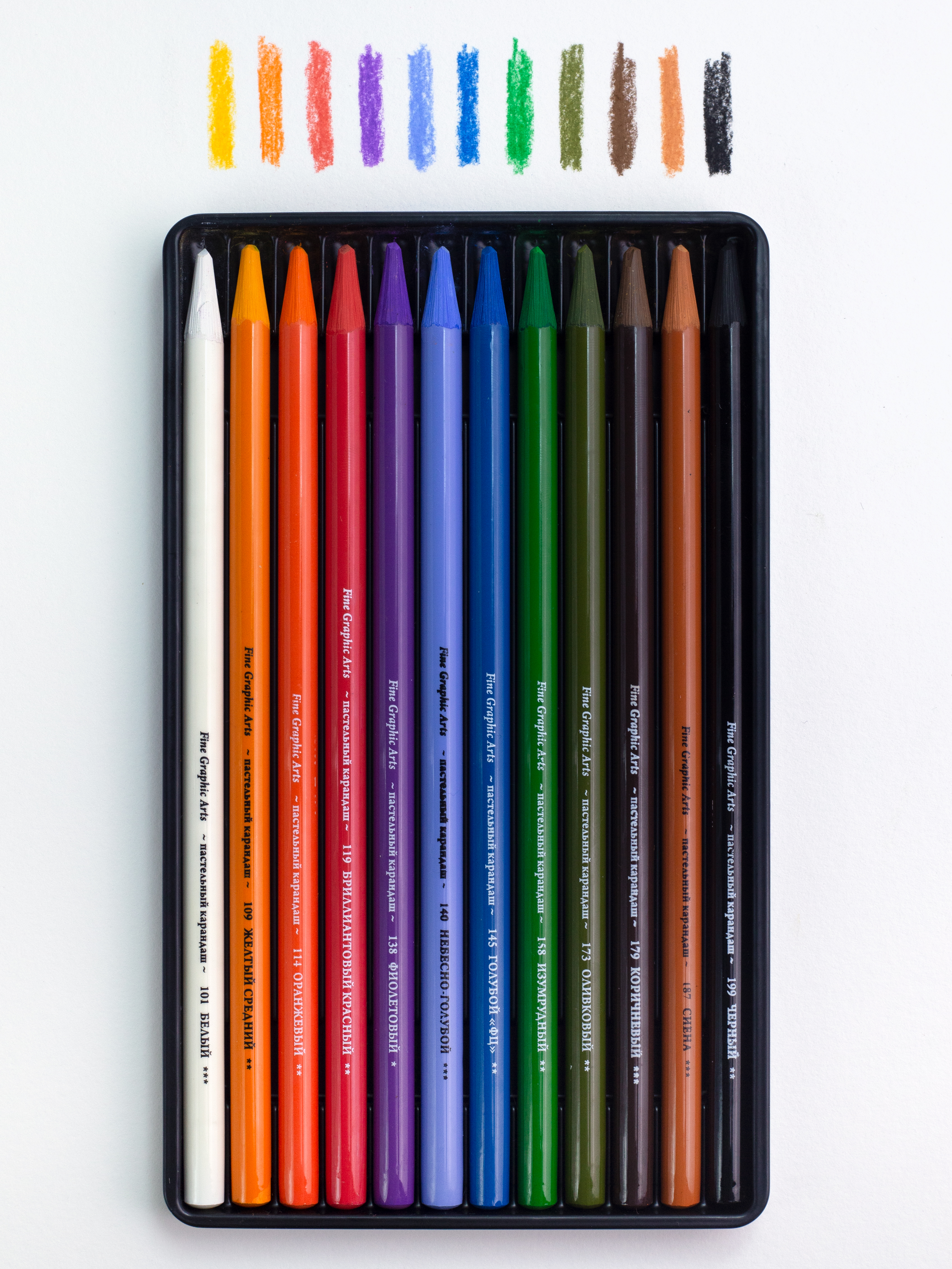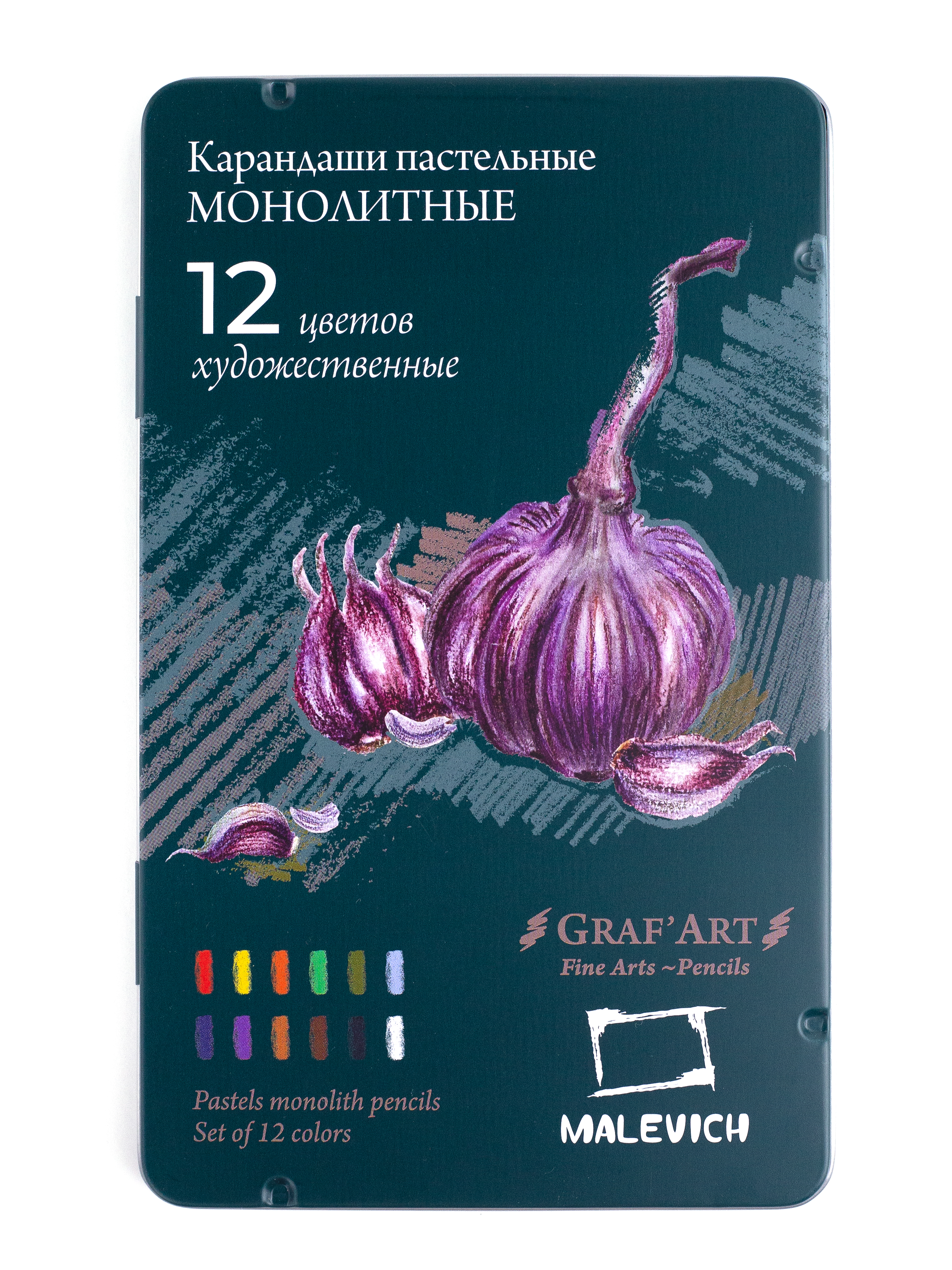 Пастельные карандаши монолиты это полнотелые карандаши без деревянного корпуса, они целиком состоят из грифеля, легко точатся и их хватает надолго. Они созданы как для любителей работать с пастелью, так и для продвинутых пользователей. Каждый сможет выбрать для себя подходящий набор: 12, 24 или 36 цветов. Палитра подходит для любых сюжетов: портрет, пейзаж, анималистка, натюрморты. Цветовая гамма от пастельных и ахроматических до ярких и сочных цветов. Смешиваются между собой, достаточно укрывистые. В работе можно пользоваться растушёвкой, спонжами, мягкими и упругими кистями, руками, также наносить штрихи самими монолитами. Широкий грифель, который можно затачивать в точилке или на наждачной бумаге, обёрнут в плёнку для того, чтобы ваши руки оставались чистыми, а сам стержень не крошился и не подвергался механическому воздействию извне. Жестяная стильная коробка не только красивая, но и даёт дополнительную защиту и служит пеналом для хранения и переноски. На коробке вы найдёте названия цветов и выкраску. После того, как работа готова, можно закрепить рисунок лаком-фиксативом.