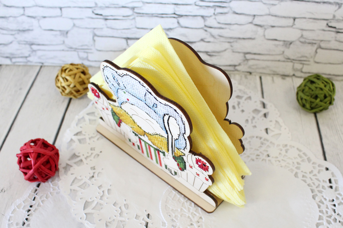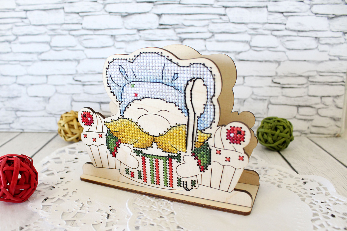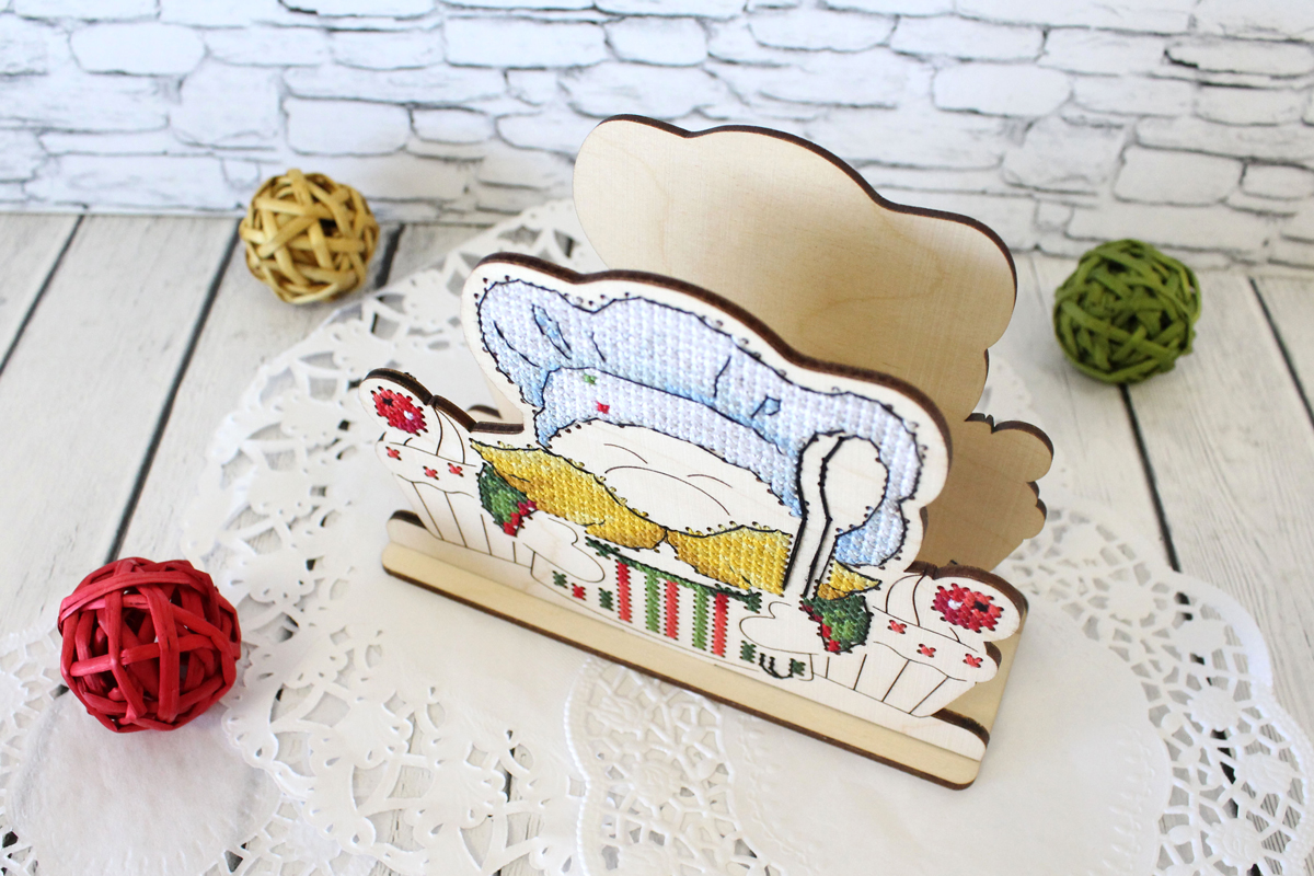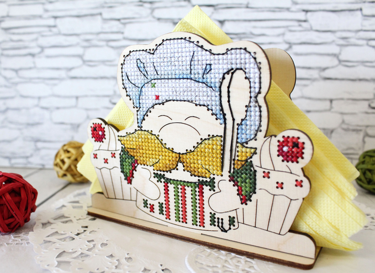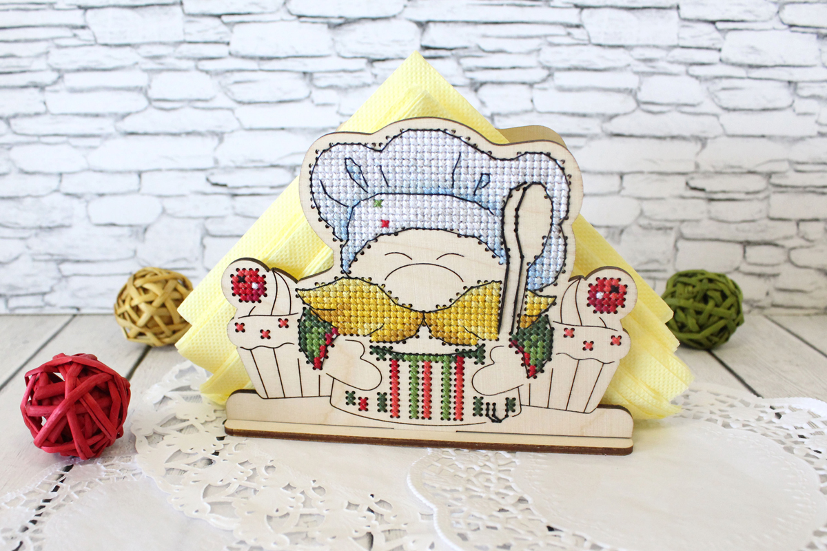 Набор для вышивания "Щепка" О-014 Салфетница "Гном". В набор входит: деревянная перфорированная заготовка, мулине ПНК им. Кирова 12 цветов, схема, фетр, игла, инструкция