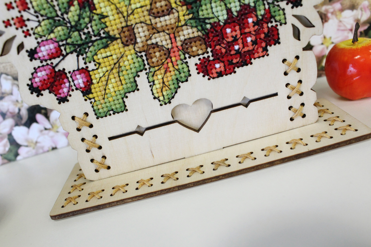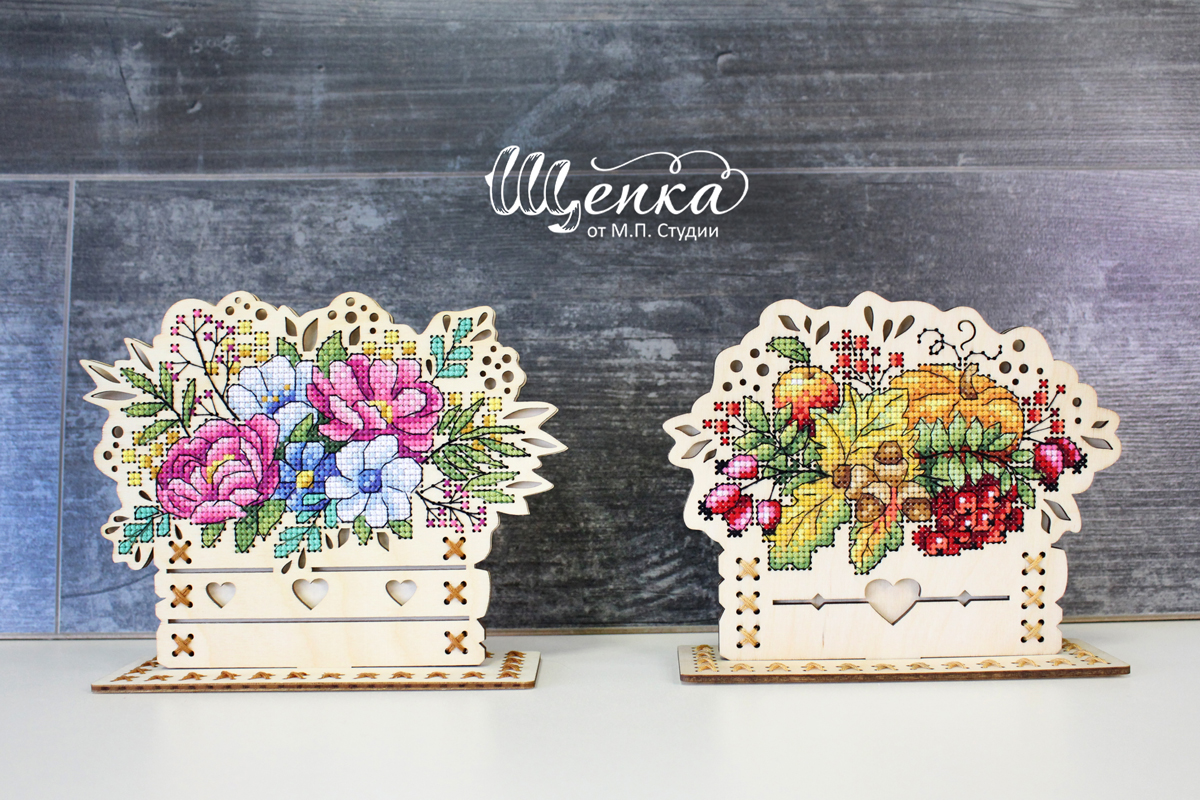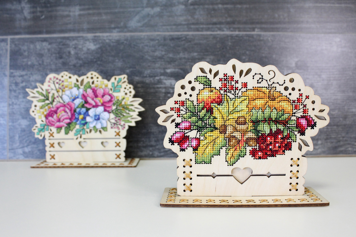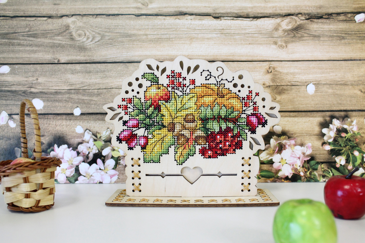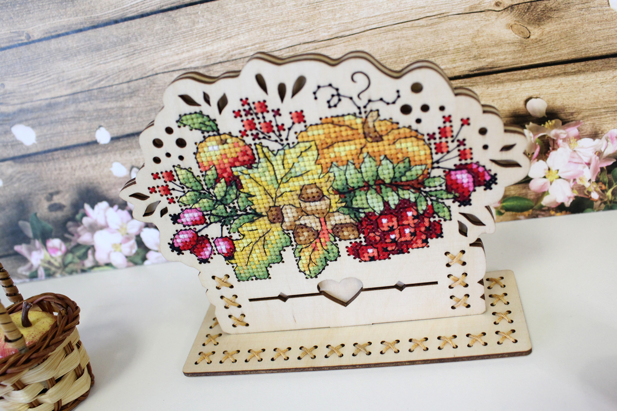 Набор для вышивания "Щепка" О-019 "Осенний букет". В набор входит: перфорированная заготовка из фанеры 3 мм, мулине ПНК им. Кирова 21 цветов, схема, игла, инструкция