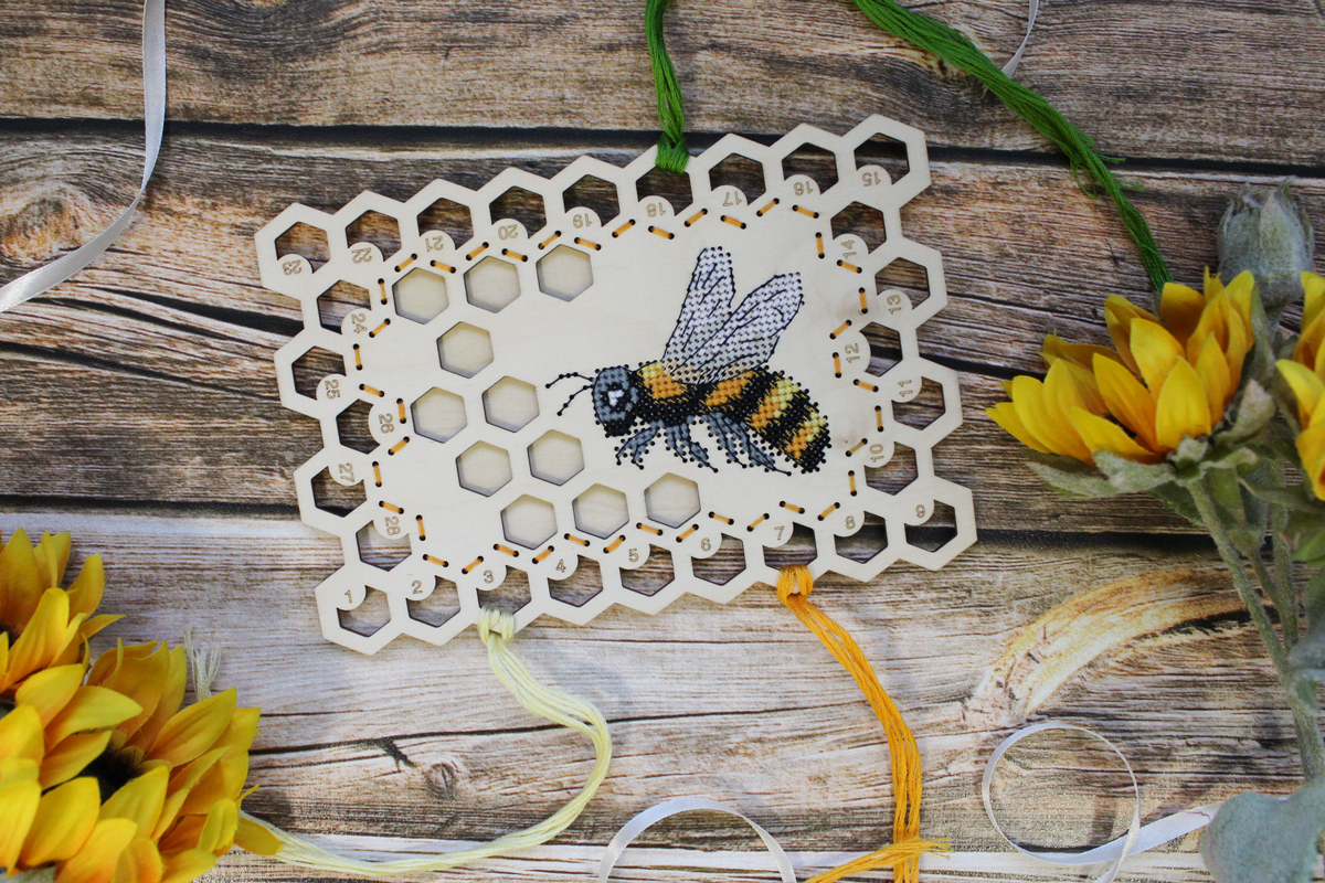 Набор для вышивания "Щепка" О-025 Органайзер "Пчела". В набор входит: перфорированная заготовка из фанеры 3 мм, мулине ПНК им. Кирова 6 цветов, схема, игла, инструкция