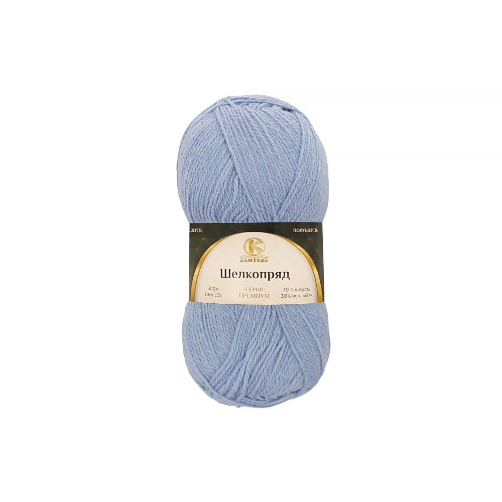 Пряжа Камтекс КТ "Шелкопряд" 70% шерсть п/т, 30% искусственный шелк 100 г 300 м 015 голубой