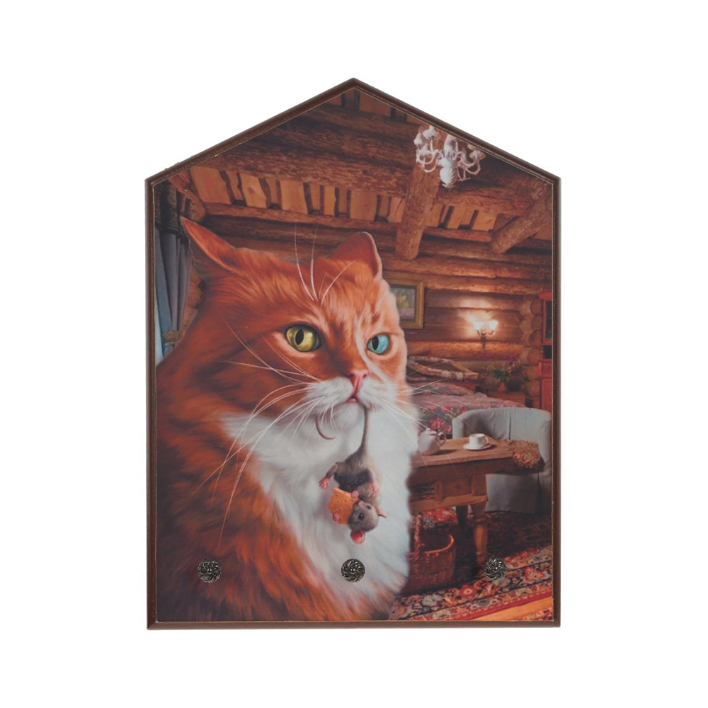 Ключница в форме домика открытого типа с тремя крючками. Украшена изображением кошечки. Ключница – предмет не только красивый, но и функциональный, поэтому ей найдется место и в квартире, и в загородном доме.