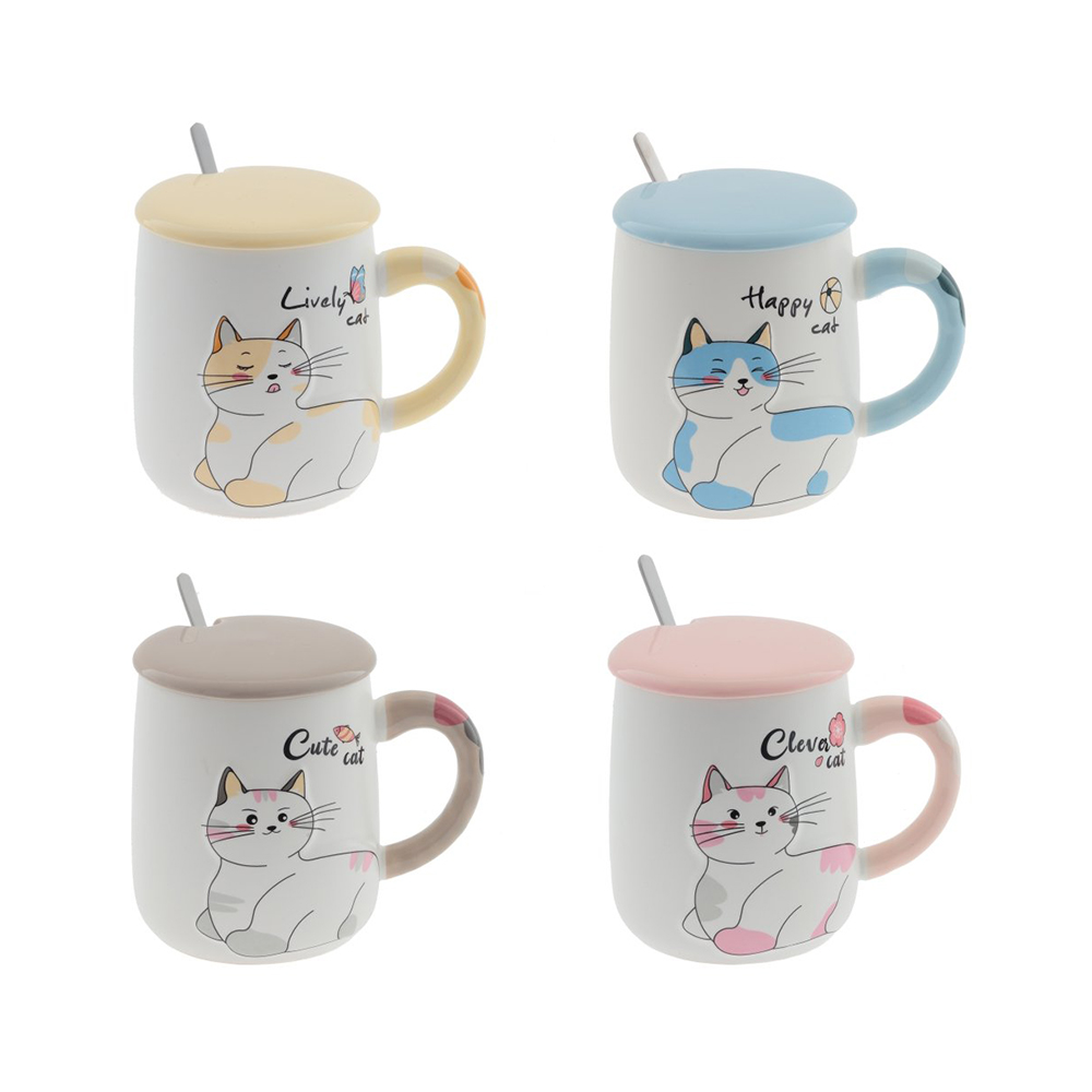 Кружка из фарфора с удобной ручкой украшена милым изображением кошечки. В комплект также входит цветная фарфоровая крышка и металлическая ложка. Эта кружка будет вашей любимицей, а каждое чаепитие с ней запоминающимся. Представлена в четырех вариантах.