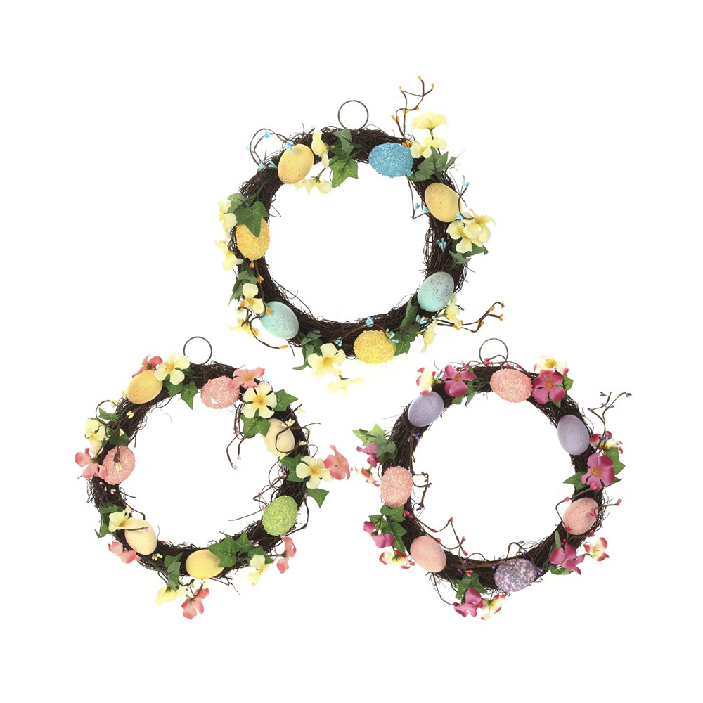 Оригинальный пасхальный венок на основе виноградной лозы украшен искусственными цветами и декоративными яйцами. Этот милое изделие заставит улыбаться всех, кто его увидит, а также будет прекрасным подарком на праздник Светлой Пасхи родным, друзьям и коллегам. Декорируйте им двери, стены, сделайте его ярким акцентом в оформлении комнаты.