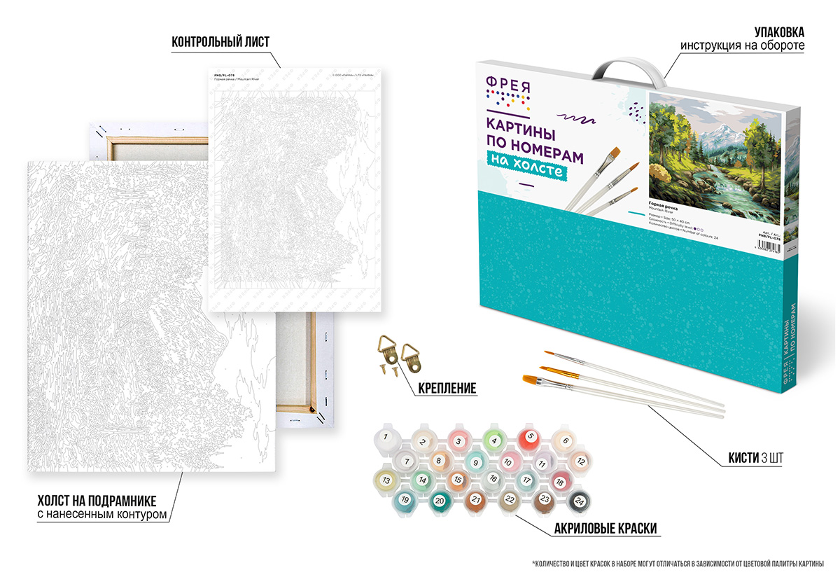 • акриловые краски в пронумерованных баночках и вакуумной упаковке;