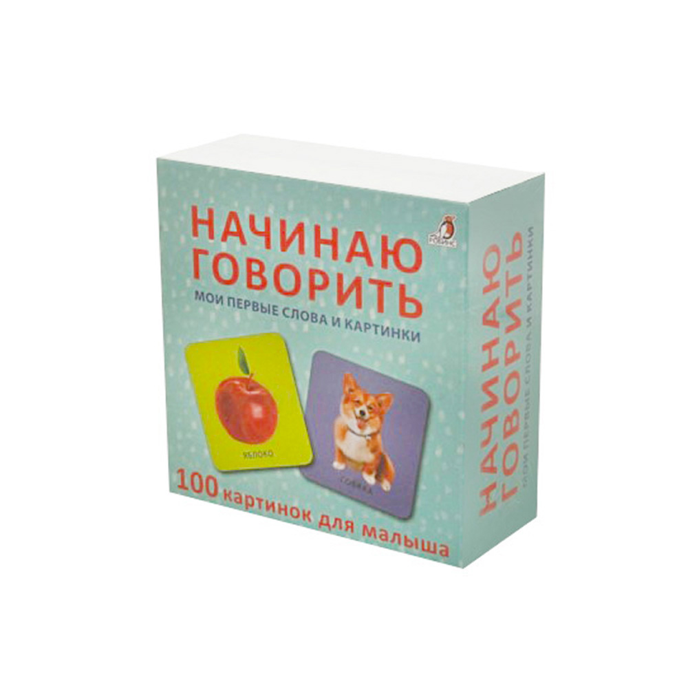 В набор входят 50 двусторонних карточек и буклет с инструкцией. В нем подобрано 100 слов на основные темы , которые специалисты рекомендуют усвоить для развития словарного запаса малыша с рождения до 2 лет. В чем особенность набора: - Каждая карточка – это яркая картинка на цветном фоне и подпись к ней с каждой стороны. - Размер карточек 11 х 11см. - Благодаря удобному формату карточки можно брать с собой в дорогу. - Карточки сделаны из картона с защитным покрытием и с скругленными уголками для безопасного использования. - Играя с набором, малыш не только узнает самые первые слова и изучит цвета, а также начнет развивать память, внимание, логику, мышление, речь и другие важные навыки. Что найдем внутри: - 50 двусторонних карточек с первыми 100 словами и картинками к ним. - Буклет с инструкцией, в котором собраны игры и задания, выполнение которых не потребует от родителей знаний педагогики и психологии. - Игры в наборе: «Разложи по группам», «Кто так говорит?», «Изучение цветов», «Угадай по одной части», «Загадки», «Вспомни картинки», «Да-нетки», «Прятки», «Составь предложение», «Что лишнее?», «Цепочка памяти». Важно знать родителям: - Набор карточек предназначен для детей с рождения до 2 лет. - Рекомендовано для занятий детей с родителями.