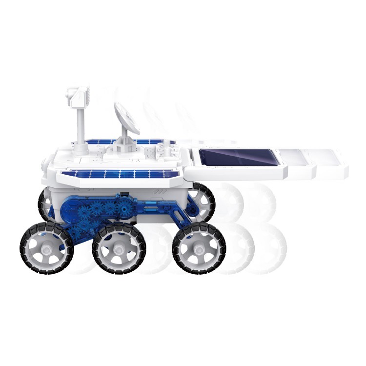 Исследовательский набор-конструктор "Марсоход 4WD" представляет собой модель для сборки планетохода, передвигающегося по поверхности Марса благодаря энергии солнца. Дома марсоход может передвигаться на элементах питания, а на улице в солнечный день использовать энергию солнца. Конструктор выполнен из качественного АБС-пластика в уникальном реалистичном дизайне космического корабля. В марсоходе все продумано до мелочей, от вращающейся во время движения на 360 градусов навигационной стереокамеры до двигательной системы ровера. Марсоход оборудован подвижной солнечной панелью, которую можно настраивать в зависимости от положения солнца. Благодаря набору дети узнают, как работают солнечные панели, электродвигатели и познакомятся с устройством марсохода. В нем предусмотрены различные схемы сборки, позволяющие учащимся понять основные принципы крутящего момента полноприводных транспортных средств, скорости и передаточных чисел. Изготовлено из пластмассы с элементами металла. Рекомендованный возраст: 6 лет +