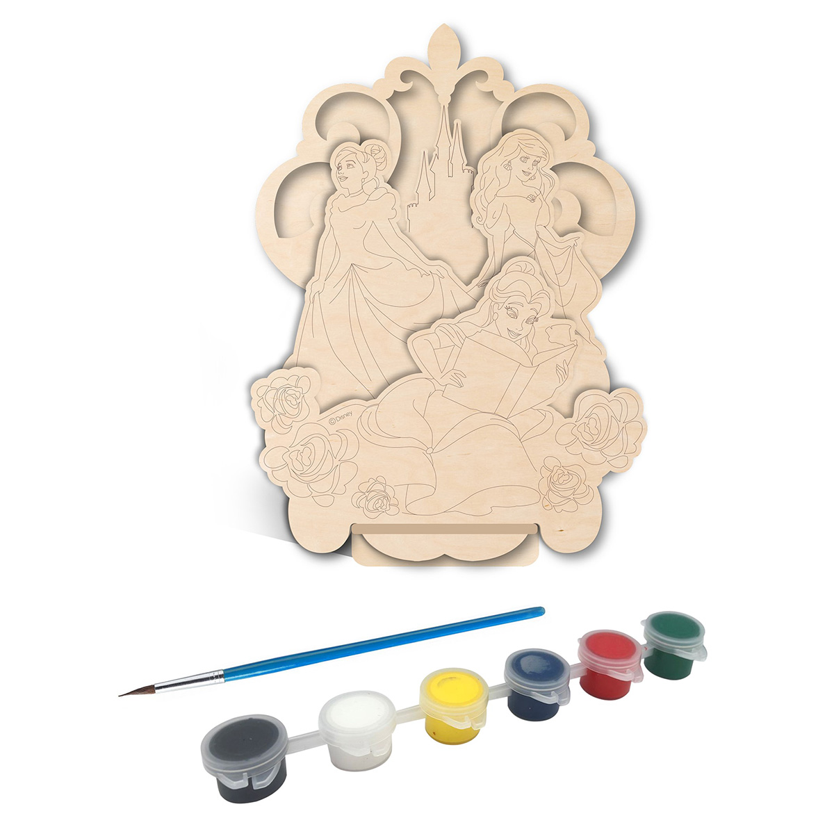 Набор для творчества "3D панно из дерева. Принцессы Disney" для раскрашивания. В комплекте: 4 фигурных слоя из фанеры с нанесением контурного рисунка + 2 детали для создания подставки, краски акрил 6 цветов, кисть. Создание панно развивает творческие способности ребенка, эстетическое восприятие, мелкую моторику. Предназначен для детей от 3 лет.